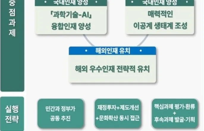 과학기술인재확보비전및추진전략[과기정통부제공.재판매및DB금지]정부가'리더급국가과학자'를매년20명선정하는동시에'젊은국가과학자'도매년수백명단위로선정해예우하기로했습니다.정부는오늘(24일)과학기술관계장관회의에서이런내용의'과학기술인재확보전략'및'과학기술로미래를선도하는연구개발생태계혁신방안'을심의·의결했습니다.앞서7일이재명대통령주재국민보고회에서발표된'과학기술인재확보전략및R&D생태계혁신방안'의세부내용을확정한것입니다.우선정부는리더급국가과학자도입에더해박사학위취득7년이내인젊은국가과학자도수백명단위로선정하는것을검토하기로했습니다.젊은국가과학자는노벨상등과학상수상가능성이높은연구분야,인공지능(AI)및차세대신기술등국가주력산업경쟁력제고와직결된분야를중점으로선발하고,대통령펠로우십과국가과학자지원금등을제공하기로했습니다.리더급국가과학자에게도대통령과의대화,공항출입국패스트트랙등영예성지원을제공하고국가R&D계획·제도설계등에참여시키기로했습니다.학문분야별로석학을선정해정년후연구를지속하는'석학지원사업'을신설하고내년20명을뽑습니다.또명예교수도전임교원과동등한지위에서대학시설을이용하고강의료를받을수있도록규칙을개정하기로했습니다.이공계인력노후보장을위한과학기술연금수혜대상도창업기업및벤처기업으로확대합니다.2030년까지해외인재2천명유치를추진하고그중70%는재외한인과학자복귀로구성합니다.현재해외한인과학자는약2만5천명,한인석박사과정유학생은5,908명수준입니다.AI,첨단바이오,양자등미래전략기술중심으로인재를유치하고,석학은패키지방식을통해유치한다.유치연구자에는비자,채용방식,조세,자녀교육,거주등종합패키지를지원합니다.외국인유학생정주여건도개선하고교수1인당1명인비자갱신재정보증제한도완화합니다.이공계대학생국가장학금수혜율을60%까지확대하고연구생활장려금지원대학도내년55~60개교로확대합니다.장려금최저지급액도점진상향합니다.이공계석박사사회초년생자산형성을돕기위한'청년과기인도약적금'도신설하기로했다.4대과학기술원중심국내외최우수박사후연구원을육성하는이노코어연구단은현행8개에서16개로확대하고,박사후연구원의법적지위도명문화합니다.13개지역거점국립대와과학기술원에'AI+X'특화학사과정을신설하면서단과대당20명내외신규전임교원채용을추진합니다.또대학연구시스템을대학연구소와연구지원조직체계로바꿔대학내전문직일자리채용을늘리기로했습니다.기초연구분야에서는내년1만5천개규모로늘어난과제수를유지하고,신진연구과제수도3,500여개를유지하는방향으로운영하기로했습니다.대학교원에게주어지던연구년혜택을출연연과기업으로확대해출연연의연구년비중을1%수준으로높이기로했습니다.#국가과학자#과학기술정보통신부연합뉴스TV기사문의및제보:카톡/라인jebo23문형민([email protected])Copyright©연합뉴스TV.무단전재및재배포금지.