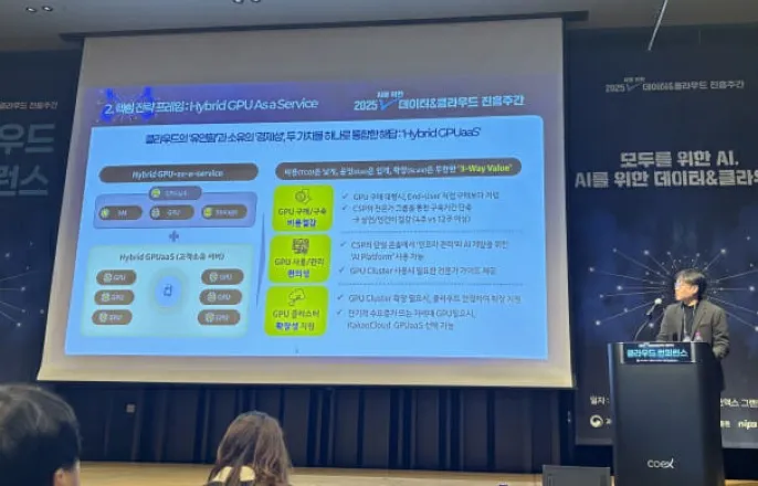 이재한카카오엔터플라이즈클라우드부문사업본부장,AI인프라新대안제시(지디넷코리아=장유미기자)카카오엔터프라이즈가인공지능(AI)인프라의새로운대안으로'하이브리드서비스형그래픽처리장치(GPUaaS)를제안했다.내년에AI서비스가더많이이용되면서클라우드비용이급증할것으로예상되는만큼유연성과경제성을동시에확보하는가장현실적인해법이'하이브리드GPUaaS'가될것으로판단해서다.카카오엔터프라이즈는지난16일과학기술정보통신부가주최하는'2025AI를위한데이터&클라우드진흥주간'행사에이재한클라우드부문사업본부장이참여해이처럼강조했다고17일밝혔다.오는19일까지서울강남구코엑스그랜드볼룸에서열리는'데이터&클라우드진흥주간'은'모두를위한AI,AI를위한데이터&클라우드'라는슬로건아래데이터및클라우드업계관계자들이모여최신기술,산업동향,미래방향등을공유할수있는자리다.이재한카카오엔터프라이즈클라우드부문사업본부장(사진=카카오엔터프라이즈)이재한카카오엔터프라이즈클라우드부문사업본부장은이번행사에참석해"2026년에는AI추론에드는비용이학습비용을추월할전망"이라며"AI서비스가더많이이용될수록추론에소요되는클라우드비용이급증하면서AI서비스기업및기관의적자폭이커지는구조적인문제에직면할가능성이높다"고내년AI서비스시장을전망했다.이어"GPU는AI모델과서비스개발에필수요소이나,GPUaaS(서비스형GPU)는비용부담이높고온프레미스방식은구축이나상면확보,운영등의부담이높다는측면이있다"며"AI서비스기업및기관은비즈니스성장단계에따라빠르게증가하는클라우드비용을절감할수있는방법을고민하며,GPU등자산확보를통한수익성개선방안을염두에두어야한다"고강조했다.카카오엔터프라이즈는이러한AI서비스기업및기관의부담을해소할수있도록고객이GPU를자산으로소유하고카카오클라우드가GPU클러스터를구축및운영하는새로운형태의하이브리드GPUaaS를선보인바있다.카카오클라우드의하이브리드GPUaaS는불확실한초기개발및기술검증(PoC)단계에서는클라우드를통해투자리스크를최소화하며민첩성을확보하고,비즈니스가본궤도에오르는시기에자산화를통해효율적으로수익성을개선할수있도록지원한다.이사업본부장은"우리의하이브리드GPUaaS는클라우드의'유연성'과소유의'경제성'등두가치를동시에확보할수있는가장현실적이고강력한해답"이라며"우리는AI서비스기업고객과기관의클라우드전략파트너로서고객이불확실한비즈니스환경에서도성장단계에발맞춰민첩성과수익성을동시에확보할수있도록가장효율적이고안정적인방안을제시할것"이라고말했다.장유미기자([email protected])Copyright©지디넷코리아.무단전재및재배포금지.