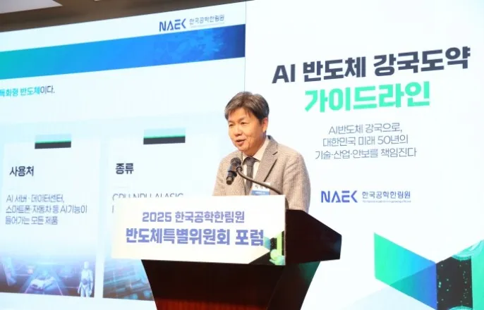 한국공학한림원반도체특별위원회‘AI반도체강국도약’포럼‘5대분야10대과제’가이드라인발표…“통합생태계절실”“10대과제시행되면2035년AI반도체178조원달성가능”“메모리외반도체생태계경쟁력약해…인재지원확대해야”안현SK하이닉스사장이17일서울조선호텔에서한국공학한림원반도체특별위원회가주최한‘AI반도체강국도약가이드라인’포럼에서발표하고있다./정두용기자삼성전자·SK하이닉스등반도체기업과학계·연구계가입을모아대통령산하조직으로인공지능(AI)반도체육성위원회를마련해야한다고촉구했다.한국공학한림원반도체특별위원회(이하반도체특위)는17일서울소공동조선호텔에서‘AI반도체강국도약가이드라인’을주제로포럼을개최했다.반도체특위공동위원장인안현SK하이닉스개발총괄(사장)과반도체특위위원인박재홍보스반도체대표등은산업현장에서겪은문제를공유하고해결방법을제시했다.학계에서는이혁재서울대교수(반도체특위공동위원장),류수정서울대교수(전사피온코리아대표),권석준성균관대교수,백광현중앙대교수등이반도체산업발전을위한방안을발표했다.김기남삼성전자상임고문(전대표이사),고동진국민의힘국회의원(전삼성전자대표이사),정은승삼성전자고문(전파운드리사업부장),이정배삼성전자상담역(전메모리사업부장),최시영삼성전자상담역(전파운드리사업부장)등삼성고위임원출신인사들도대거자리했다.반도체특위는10개월간논의를진행해산업발전에필요하다고본‘5대분야10대과제’를선정했다.이날발표된‘K-AI반도체강국의가이드라인’에는▲반도체육성정책을추진하는거버넌스‘대통령산하AI반도체육성위원회’운영▲공공·민간의연구역량을결집할‘AI반도체기술원’설립▲‘반도체전문가’(DoctorofChip)제도신설▲반도체연구자에대한병역특례·보상확대▲제조·설계·서비스를연결하는‘K-AI통합생태계’구축▲공공분야(국방·전력등)전용도메인AI반도체개발▲온디바이스AI(서버연결없이기기자체적으로AI기능을수행하는기술)반도체상용화지원등의내용이담겼다.안기현한국반도체산업협회전무는“반도체강국을달성하기위해9개의가이드라인이필요하고,이를이행하려면대통령직속육성위원회를마련해야한다는의미”라고말했다.이정배삼성전자상담역은10대과제로구성된‘K-AI반도체강국의가이드라인’이실현된다면“AI반도체수출이2035년에는연간1200억달러(약178조원)를돌파할수있을것”이라고말했다.“기술주권과국가안보강화할방안”이라는것이다.고동진의원은이에대해“반도체특별법을마련해국회법제사법위원회를통과하고현재전체회의만기다리고있다”며“법안이통과되면대통령산하AI반도체특별위원회가가동된다.또법안에병역특례내용과재정적지원내용도들어가있다”고말했다.고동진국민의힘국회의원이17일서울조선호텔에서한국공학한림원반도체특별위원회가주최한‘AI반도체강국도약가이드라인’포럼에서발표하고있다./정두용기자◇“메모리제외하면추격자…정부주도의통합운영필요”이날포럼에서는현재반도체시장상황을진단하고경쟁력을확보할다양한방안도제시됐다.이혁재서울대교수는“AI반도체는단순한기술부품을넘어미래산업을좌우할전략자산”이라며“2035년AI반도체시장규모가7750억달러(약1147조원)로2024년대비약9배성장할것이라고전망되는데,한국은메모리분야를제외하면상용화경험과생태계인프라가초기단계에머물러있어문제”라고진단했다.안현SK하이닉스사장은“우리나라반도체산업은큰일이난상태이고위기감은어느때보다심각하다”며“미국은빅테크중심으로버티컬(특정산업·업무에특화)AI를주도하고있고,중국역시정부가드라이브를걸어AI반도체경쟁력을확보하고있다.반면우리나라는메모리분야경쟁력을제외하고는사실상추격자”라고했다.그러면서“우리나라AI생태계역시다양한기술·산업을보유하고있는데각분야가분절·분리된상태로각개전투를벌여규모면에서경쟁력을확보하기어려운구조”라며“정부주도로관련산업을통합운영해국가단위의버추얼빅테크(VirtualBigTech)생태계를구축해글로벌AI강국으로도약해야한다”고말했다.17일서울조선호텔에서한국공학한림원반도체특별위원회가주최한‘AI반도체강국도약가이드라인’포럼에서발표자들이참석자와토론을진행하고있다./정두용기자류수정서울대교수도“메모리를제외하면우리나라는AI반도체분야에서전반적으로경쟁력이약한것으로평가된다”며“특히AI반도체핵심이라고볼수있는그래픽처리장치(GPU)·신경망처리장치(NPU)등기반프로세스역량은상당히부족하고,소프트웨어부분에서도AI서비스수요가부족해약한경쟁력을지녔다”고분석했다.이어“AI를구동하는코어하드웨어뿐아니라AI서비스와같은소프트웨어분야에더많은최적화기회를제공해야생태계가활성화될것”이라고말했다.류수정서울대교수가17일서울조선호텔에서한국공학한림원반도체특별위원회가주최한‘AI반도체강국도약가이드라인’포럼에서발표하고있다./정두용기자백광현중앙대교수는“현재인재의‘의대쏠림’이나타나고있는데,AI반도체가‘부의사다리’가된다면