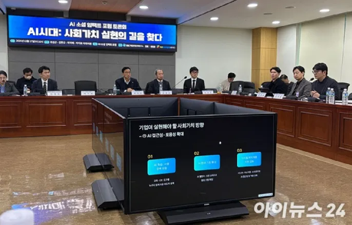 17일'AI시대:사회가치실현의길을찾다'토론회AI접근성·포용성확대,신뢰·안전성강화,지속가능한사회적성장기여등강조[아이뉴스24정유림기자]"인공지능(AI)을활용해업무효율을크게높이는사례들이나타나고있다.AI도입에따라새로생겨나는직무나직군,직렬의일자리에대한확보가필요하다"17일서울영등포구국회의원회관에서'AI시대:사회가치실현의길을찾다'를주제로열린AI소셜임팩트포럼토론회에서김세웅카카오AI시너지태스크포스(TF)부사장(맨오른쪽)이'AI시대,기업의사회가치실현방안'에대해발표하고있다.[사진=정유림기자]17일서울영등포구국회의원회관에서'AI시대:사회가치실현의길을찾다'를주제로열린AI소셜임팩트포럼토론회에서김세웅카카오AI시너지태스크포스(TF)부사장은'AI시대,기업의사회가치실현방안'이라는주제로발표하며이같이제언했다.카카오의AI전략을맡고있는김부사장은"기업에서도AI도구를도입할것인지,또이를도입했을때이것이노동문제와어떻게직결될것인지고민을많이하고있다"며"기업과사회의성장이일자리(고용)문제와무관하지않은만큼AI가도입됨으로써그와관련해새로생겨나는일자리에대한확보가필요하다"고말했다.최근대화형AI서비스챗GPT운영사오픈AI는기업이AI활용시업무시간을하루평균1시간정도단축하는것으로조사됐다는내용을담은보고서를내놨다.이를언급하며김부사장은"내부에서도AI를잘쓰는사람은하루종일AI만쓰는반면,안쓰는사람은(정말)안쓰는모습"이라며"잘활용하는경우업무효율이100~200%증가할수도있을것"이라고했다.그러면서"카카오에서도AI툴(도구)을도입하기위해해외개발자(엔지니어)를불러서(내부)교육도하는데이런활동들이사회적으로(더활발히)이뤄져야할것으로본다"고진단했다.AI시대에사회적가치실현을위해기업이나아가야할방향성으로는△AI접근성과포용성확대△AI신뢰성과안전성강화△지속가능한사회적성장기여,3가지를꼽았다.세대또는직군에따라AI에대한접근성(활용)격차가심화할수있는만큼열린교육을통한참여기회확대,고령층과소상공인같은디지털취약계층의역량강화지원등을추진해야한다는것이다.그는"AI를활용하려면비용이드는데이것이보편적으로지원되지않으면결과적으로소득에의한계약이일어날수밖에없을것"이라며"이를해소하기위한방안의일환으로AI에대한참여기회확대와같은여러사회적인지원이필요할것으로본다"고덧붙였다.안전한AI개발과활용에대해김부사장은"기업에서해외AI를사용했을때(여기에)기업의정보를올리는것이안전한지,또개인이민감정보를(해외AI에)올리는것이안전한지등다양한고민지점들이있다"며"이와관련한일종의보고체계에대해서(서비스를만드는)기업을비롯해정부(국가)등이함께고민할필요가있어보인다"고했다.그는또"칼은요리할때쓰지만사람을다치게할수도있듯AI역시이런칼과같은측면이있으며AI시대에기업의역할은국가의역할과비슷할것으로도본다"며"기업에서는사내직원(근로자)을위해AI를업무프로세스(절차)에도입해혁신을창출해야하고그결과가내부에다시혜택으로돌아갈수있도록접근성과신뢰성,지속가능성관점에서꾸준히고민할것"이라고했다.한편더불어민주당위성곤,김한규,박지혜,차지호의원이공동주최한이날토론회에서는산학계전문가등이AI를통한사회가치실현방안을모색했다.AI의산업화에서나아가사회가치실현방안을모색하기위해발족한AI소셜임팩트포럼은이번토론회를시작으로공공성강화를위한AI정책제안과발굴사업등을본격적으로추진한다는방침이다./정유림기자([email protected])Copyright©아이뉴스24.무단전재및재배포금지.