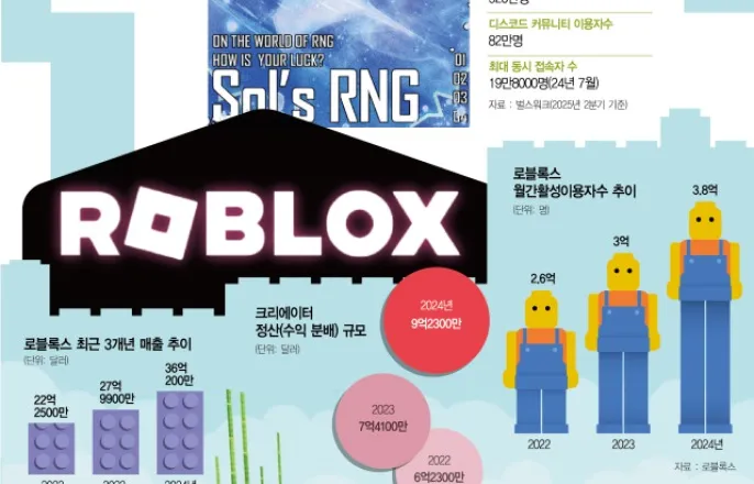 로블록스네이티브가만든Sol'sRNG누적방문13억명···올매출120억전망"학교다니듯10년간로블록스즐긴덕에이용자가원하는게임이뭔지알게돼"포트나이트·크래프톤등도UGC생태계구축[서울경제]글로벌이용자생산콘텐츠(UGC)로블록스에서한국인개발자들이만든게임Sol'sRNG’.이게임은최근누적방문자수가13억명을넘어서는대기록을세웠다.2023년말알파테스트로첫선을보인지불과1년반만에이룬성과다.지난해에는크리에이터정산매출로60억원을벌었다.올해는두배인120억원의매출을내다보고있다.놀라운점은게임개발자들의평균연령이17.8세라는점이다.어릴때부터로블록스에서게임을즐기던이들이하나둘모여게임개발과기획,아트요소제작을분담해PC방이용료외에는딱히추가비용도없이시작한프로젝트로이룬결실이다.한때부모들과실랑이를벌이며게임콘텐츠를소비했던‘로블록스세대’들이이제로블록스생태계내에서생산자로우뚝서는시대가왔다는평가다.━평균나이17.8세···로블록스개발진감탄“처음에는‘너도이거해볼래’라고놀이느낌으로시작한작은게임이었어요.구독자533만명의‘스케치’라는로블록스전문유튜버가저희게임을즐기는영상을올리고나서반응이오기시작했어요.”(김진검군,서울디지텍고2학년)2023년16살이었던김진검군과동갑내기백지환군,봉원철씨가합세해개발을맡았다.또다른16살동갑내기조승찬군이게임아트디렉터를맡았다.여기에조군의형인조승헌(21)씨가합류해게임기획과팬들과의소통을맡으면서게임은형태를갖추기시작했다.다른확률형게임과차별요소도만들었다.캐릭터주변의‘아우라’를나타내는날개등여러수집요소의완성도가기존로블록스게임에서는보지못하는참신한요소로인기를끌었다.아우라를개발한이들은김익재(20),추현성(17)군이다.이들은지난해로블록스개발자컨퍼런스(RDC)2024에한국개발자로는처음으로초대를받기도했다.로블록스개발진들은아우라등의아이디어에대해‘훌륭하다(Amazing)’등감탄사를연발하며노하우를묻기도했다고한다.지난달Sol'sRNG의업데이트를알리는이미지/사진제공=벌스워크━초등때부터10년업력의로블록스네이티브이들은소규모로제작된Sol'sRNG가빠르게로블록스에침투하게된요인을두고창작자가모두‘로블록스네이티브세대’라는점을꼽는다.적게는15살부터많게는22살까지포진한개발팀은나이는제각각이지만로블록스를즐긴업력은10년내외로비슷하다.김진검군은“8살때로블록스를시작했는데우리세대에게는로블록스가학교다니는것처럼친구를사귀고함께노는곳이었다”며“학교에서친구를사귀고평판관리를하는것처럼다른이용자들이무엇을원하는지자연스럽게파악하게됐다”고설명했다.서울디지텍고에재학중인김군은이미전교생사이에서는롤모델로통하고있다.한때60억원에게임을인수하겠다는제안도받았지만게임기반소셜플랫폼인디스코드커뮤니티에서매일같이활동하는82만명의이용자들을낙담시키고싶지않았다.이용자들과의끊임없이친근한소통을진행하는것도이게임의강력한인기요소다.“보통하나의게임을즐기면그게임에서쭉시간을보내고성장해요.그런데그게임이바뀌면그간쌓은능력치뿐만아니라관계도우정도날아가는거죠.”Sol'sRNG개발진은매각대신게임·콘텐츠제작사인벌스워크의윤영근대표와의기투합해법인설립을택했다.청소년들의사이드프로젝트가어엿한회사로성장한것이다.윤대표는“이전부터로블록스생태계의성장가능성을눈여겨보고여러시도를했지만대형개발사출신개발자들도흥행하는게임을만들어내지못했다”며“로블록스를즐기며성장한‘로블록스네이티브’가아니면로블록스를즐기는미국10대의감성을이해할수없다”고설명했다.이어윤대표는“아시아전체로봐도Sol'sRNG만큼의미있는성과를낸게임이없다”며“장기적으로1조원의매출을내는게임으로도성장할수있을것”이라고덧붙였다.지난달윤영근(왼쪽)벌스워크대표와자회사인Sol'sRNG의조승헌공동대표가지난달서울강남구사옥에서포즈를취하고있다./정혜진기자━로블록스폭발적성장“전세계게임시장10%노린다”업계에서는제2,제3의'Sol'sRNG'등장가능성이크다고본다.Sol'sRNG사례처럼로블록스에서놀던청소년들이유저에서개발자로변신하는사례가앞으로잇따를수있기때문이다.2006년서비스를시작해올해로20년차에접어든로블록스는메타버스플랫폼을넘어서게임과소셜을동시에즐기는대체불가한플랫폼으로자리잡았다.로블록스의창업자인데이비드바수츠키는지난해열린연례로블록스개발자컨퍼런스(RDC)2024에서기조연설을통해“로블록스의성장세는아직시작단계에불과하다”며“현재는전체시장의3%남짓을차지하고있지만앞으로10년후에로블록스는전세계게임콘텐츠시장의10%이상의점유율을차지하게될것”이라고선언했다.전세계게임콘텐츠시장규모가지난해기준약1800억달러(약247조원)로추산되는것을고려하면앞으로로블록스가가져올파이가20조원이넘을것이라는설명이다.실제로압도적인성장세는이같은비전에힘을실어주고있다.올1분기로블록스가공식발표한바에따르면10대들의로블록스일일체류시간은평균2시간38분에달한다.이는같은기간10대들이가장많