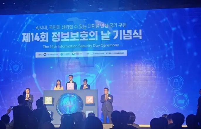 산업계는자발적인투자생태계조성…학계는인재양성보안업계는차세대보안R&D…시민은생활속실천선언정부'국민이신뢰할수있는디지털안심국가구현'약속류제명과학기술정보통신부제2차관이9일오전서울용산구드래곤시티호텔에서열린'제14회정보보호의날기념식'에서세리머니를하고있다.(사진=과학기술정보통신부제공)*재판매및DB금지[서울=뉴시스]오동현기자=인공지능(AI)시대에우리나라가디지털안전국가를실현하려면기업·학계·정부·시민이하나되어정보보호생태계구축에나서야한다는목소리가모였다.정보보호는비용이아닌생존을위한투자이며,정부는이를정책적으로뒷받침하겠다는의지를밝혔다.9일서울용산에서제14회정보보호의날을맞아과학기술정보통신부,국가정보원,행정안전부가주최한정보보호컨퍼런스가개최됐다.‘AI시대,국민이신뢰할수있는디지털안심국가구현’을주제로,대한민국모든구성원이원팀(One-Team)이돼국가전반사이버보안체계의대전환을통해기초가튼튼한AI시대를준비한다는의미에초점을두고진행됐다.이어국민대표단4인의사이버보안릴레이비전선언이이어졌다.이들은보안에대한자발적인투자생태계조성(산업계),정보보호핵심인재양성(학계),차세대보안R&D(보안업계),생활속실천(일반시민)등각자의관점에서정보보호에대한의지를다짐했다.먼저기업들은고객신뢰확보와지속가능한성장을위해정보보호에많은투자를하고있다고강조했다.이종명대한상공회의소산업혁신본부장은"기업들은AI시대가도래함에따라AI전환을어떻게해야할지많은고민을하고있다.또한편으론고객신뢰와기업의기대수명을유지하기위해정보보호라는높은벽을어떻게세워야할지도많이고민하고있다"고말했다.그는"이제기업들은모든리소스인력과예산을투입해서두텁게쌓으려고하고있다.사이버공격에뚫릴경우국가안보나국민의안전에위협이될수있기때문이다.현장에서는정보보호비용이라는말은거의사라졌다.정보보호투자라고얘기를한다"며"이제기업들은최우선경영전략의과제로정보보호투자에힘을쓰고,나아가디지털안심국가에도큰노력을기울이겠다"고약속했다.류제명과학기술정보통신부제2차관이9일오전서울용산구드래곤시티호텔에서열린'제14회정보보호의날기념식'에서정보보호유공표창수상자들과기념촬영하고있다.(사진=과학기술정보통신부제공)*재판매및DB금지학계에서는AI시대를뒷받침할정보보호인재의중요성을피력했다.박영호한국정보보호학회장은"고도화된사이버위협과빈번한실내사고속에서AI시대를선도할국가는기술뿐만아니라인재를갖추는나라일것"이라며"그핵심은결국사람"이라고강조했다.박회장은"대한민국이지속적인성장을위해체계적인인재양성체계를구축해야한다.학계는교육과연구를통해서인재를배출하고,정부는제도적인기반과정치적인지원을마련하고,기업은현장에맞는정보보안인력을적극수용해야한다"며"이런협력이성사될때미래를이끌어나갈보안인재들이탄생하고자라게될것"이라고말했다.그러면서"한국정보보호학회는지난35년간사이버보안을위해서한국과기술을연구하고협력해왔다.앞으로도정보보호핵심인력양성을통해서AI강국대한민국의미래를함께준비해나가겠다"고약속했다.산업계에서는정부의정보보호분야투자확대를요청했다.이동범지니언스대표는"AI와양자기술등디지털신기술이우리사회와산업의판도를바꾸는동력이다.동시에이런기술들은기존의정보보호체계들의근본을흔들고있다.새로운위협이새로운기술이새로운위협을돌려주는그런시대가됐다"고짚었다.[서울=뉴시스]오동현기자=9일오전서울용산구드래곤시티호텔에서열린'제14회정보보호의날기념식'퍼포먼스가진행됐다[email protected]그는"정보보안기업들은기존의AI보안,양자내성암호화등새로운신기술개발에굉장히많은노력을기울이고있다.하지만쉽지않다"며"정부의국가적인R&D(연구개발)투자가필요하다.그다음으로민간과공공기관이함께실증할수있는테스트베드도필요하다.글로벌수준의국제표준화연계도만들어야한다"고촉구했다.이어"정부가정보보호에대한투자를좀더깊이지원해준다면,우리정보보호기업들은대한민국이디지털시대에제일안전한국가로만드는데웃을수있도록그심장의역할을할수있다고생각한다"며"선제적이고,미래지향적인기술에투자해야만디지털경쟁력도확보할수있다.대한민국정보보호기술을선도하는기업의일원으로서디지털안전국가의주춧돌이되도록노력하겠다"고강조했다.민간대표는국민이사이버위협으로부터안심할수있는나라를만들어달라고정부에촉구했다.단상에오른성신여자대학교학생은"우리는AI와디지털이일상이된삶을살고있다.동시에사이버위협또한우리일상에가까워지고있음을느낀다"며"국민이무방비한상태로디지털사회를살아가지않도록국가가앞장서국민생활의보안을강화하는정책과예방중심의보안교육,그리고신속한사고대응및피해복구시스템을마련해주시기를요구한다"고전했다.'AI시대,국민이신뢰할수있는디지털안심국가구현'이라는주제로진행된이날행사에서정부는▲사이버보안역량강화를위한정책·제도재정비▲기업의책임감있는보안을위한이