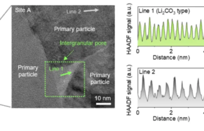 한국에너지기술연구원(원장이창근)연구진이차세대전기차배터리핵심소재인'하이니켈양극재'의성능저하난제를해결했다.에너지연은진우영·차형연울산차세대전지연구개발센터박사팀이하이니켈양극재의고질적문제인'잔류리튬화합물'위치를규명하고,이를최소화하는설계방안을제시했다고22일밝혔다.양극재니켈함량이높을수록전지에너지밀도가올라가고전기차주행거리가향상되는데,하이니켈계양극재는니켈함량이80%에달한다.차세대전기차시장핵심기술이다.다만니켈함량이늘어날수록양극재표면잔류리튬화합물이생성이많아지고,전극원료가젤리처럼굳는겔화현상이일어난다.입자가고르게분포되지않고,전극물질접착력도20%가량줄어들어성능저하를일으킨다.잔류리튬화합물기존에는잔류리튬이입자표면에존재한다고판단,표면을증류수로세정하는수세공정이나외부코팅법을썼는데,여전히성능저하문제는해결되지않았다.연구진은기존통념과달리잔류리튬이양극재내부입자사이에도존재함을최초확인했다.기존간과된양극재내부구조가배터리성능,수명저하요인임을규명하고잔류리튬원천억제설계방향을제안했다.고해상도전자현미경,질소흡착분석,전자에너지손실분광등첨단분석법으로양극재를정밀분석해잔류리튬화합물이입자간미세한틈에결정질형태로존재하며주된성능저하원인이됨을확인했다.이를토대로양극재내부잔류리튬형성억제를위한단결정구조고니켈양극재활용을제안했다.단결정구조는내부입자간경계가없거나매우제한적이어서잔류리튬이고체화될공간을차단할수있다.연구진은고니켈단결정양극재를활용할경우기존양극재보다잔류리튬수치를54%낮출수있어,산업계·학계목표인잔류리튬화합물2000PPM이하달성에기여할수있을것으로전망했다.진우영·차형연박사는“기존에표면중심으로접근했던잔류리튬문제를입자내부구조까지확장해정밀분석한최초사례”라며“양극재설계와공정에반영되면고에너지밀도리튬이온배터리시장확대에큰역할을할것”이라고밝혔다.이번연구는과학기술정보통신부글로벌TOP전략연구단지원사업과원천기술개발사업지원을받아수행됐으며,'저널오브머티리얼즈케미스트리A'2월호표지논문으로선정됐다.김영준기자[email protected]©전자신문.무단전재및재배포금지.
