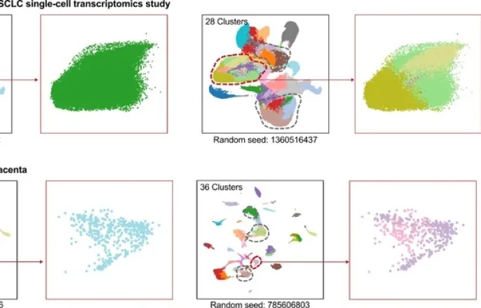 기존보다최대30배빠른속도로안정적인결과만을자동으로선별,대규모생명과학데이터분석정확도·효율성을획기적으로향상시키는방법이나왔다.기초과학연구원(IBS·원장노도영)은김재경수리및계산과학연구단의생명수학그룹CI(KAIST수리과학과교수)연구팀이세포분류(클러스터링)결과안정성을수학적으로평가해불안정한결과를걸러내는새로운분석도구'scICE'를개발했다고3일밝혔다.단일세포수준유전자발현분석기술인단일세포전사체분석법(scRNA-seq)은현대생명과학연구핵심도구로자리잡았다.이과정에서클러스터링은유사한유전자발현특성을가진세포들을그룹으로묶는작업으로,암세포와정상세포를구분하거나새로운세포유형을발견하는데중요한첫걸음이다.하지만클러스터링알고리즘은무작위로세포를분류해같은데이터를분석해도결과가달라지는경우가많다.제1저자인김현선임연구원은“일부정상세포가암세포로잘못분류되거나중요한세포유형이누락되는불안정성으로연구자들이다시분석하거나복잡한계산을통해신뢰도가높은결과를선별해야했다”며“기존방법들은분석을여러번반복해합의된결과를도출하는방식으로,계산량이방대하고수만개이상세포가포함된대용량데이터에는적합하지않다”고말했다.클러스터링알고리즘의무작위성에따른분석결과변동성연구팀이개발한scICE는한번분석으로도얼마나일관성있게결과가도출됐는지를수학적으로평가한다.새로도입한'불일치계수(IC)'를통해많은계산량이요구되는연산없이도클러스터간안정성을정량적으로판단할수있다.모든세포를일일이비교하던기존방식과달리,불일치계수를활용한안정성평가는클러스터구조간유사성만평가해비교대상을획기적으로줄일수있어분석시간을크게단축한다.연구팀은뇌·폐·혈액등다양한조직에서수집된48개실제및모의scRNA-seq데이터에scICE를적용해그유효성을입증했다.그결과기존분석결과중약3분의2는통계적으로불안정하며신뢰하기어렵다는사실을밝혀냈다.반면,scICE는신뢰할수있는결과만을선별해연구자시간과계산자원을절약하면서도정확도를한층높였다.또scICE는일반적인클러스터링으로는놓치기쉬운희귀한세포유형을효과적으로탐지했다.실제로일부데이터에서찾기어려웠던희귀면역세포들을scICE기반서브클러스터링을통해안정적으로식별해냈다.예를들어,매우복잡한분석을거쳐야만식별할수있던여러대식세포아형들을훨씬간편하고정확하게구분해냈다.scICE에관심있는연구자는누구나깃허브사이트를통해쉽게활용해볼수있다.김재경CI는“이번연구는수학적아이디어가어떻게생명과학의핵심문제를해결하고분석과정을혁신할수있는지를보여주는성과”라며“클러스터링신뢰도의중요성이간과돼온측면이있는데,이번기회로scICE가생명과학분야에서신뢰도높은데이터해석을가능케하는표준도구로자리잡기를기대한다”고전했다.박종은KAIST교수팀,김종경포스텍교수팀,서민석고려대교수팀과공동으로참여한이번연구결과는네이처커뮤니케이션즈에2일온라인게재됐다.김영준기자[email protected]©전자신문.무단전재및재배포금지.