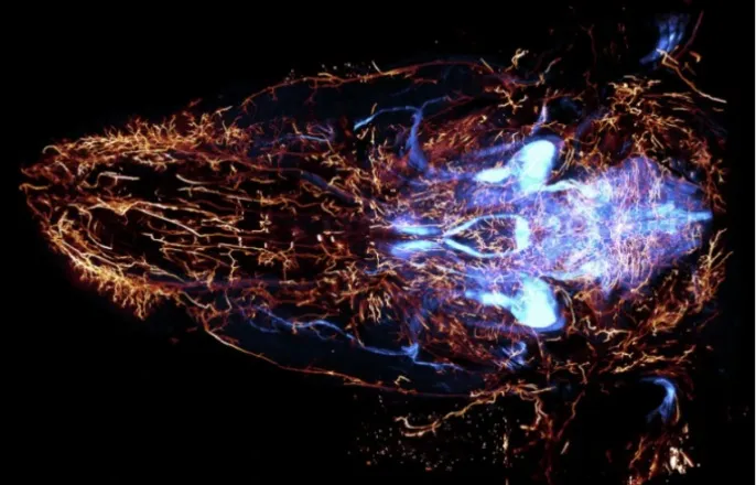 고해상도이미징기술을통해시각화된생쥐머리의뇌신경(파란색)과혈관(빨간색).Credit:M.-Y.Shietal./Cell중국연구진이생쥐의뇌와척수에서말초장기에이르는신경망을마이크로미터(μm·100만분의1m)수준의해상도로40시간만에3차원(3D)으로구현하는데성공했다.기존에는뇌연결망(connectome·커넥톰)에한정됐던신경계지도가이번연구를통해전신수준으로확장됐다.뇌를비롯한신경계전체에서신경세포간연결구조를정밀하게지도화하는커넥토믹스(connectomics)연구의전환점을마련했다는평가가나온다.궈창비중국과학기술대학교(USTC)교수연구팀은생쥐조직에화학처리를통해지방과칼슘등빛을방해하는성분을제거하고조직을투명화한뒤형광표지단백질로신경을시각화한연구결과를국제학술지'셀'에10일(현지시간)발표했다.연구팀은절단장치와3D이미징현미경을결합한맞춤형장비를이용해400μm간격으로생쥐몸을절단했다.각절단면을고해상도로연속촬영하는방식으로전체신경지도를40시간만에완성했다.촬영은약200회반복됐다.각이미지는최대600μm깊이까지신체내부구조를포착했다.기존방법보다수십배빠르면서도전체신경망을정밀하게추적한것이다.연구팀은“기존시스템은몇달에서수년이걸렸는데이번기술은그한계를획기적으로줄이는데성공했다”고설명했다.연구팀은성체생쥐16마리를대상으로서로다른방식의형광표지기법을사용해실험을여러차례반복했다.일부생쥐는특정뉴런에서형광단백질이스스로만들어지도록유전적으로조작했다.일부생쥐에게는교감신경계의특정단백질을찾아가는항체에형광물질을붙여해당신경을밝히는면역표지방법을사용했다.또다른실험에서는바이러스를이용해뇌에서가슴과배속장기까지이어지는미주신경을따라가는신경섬유하나하나를끝까지추적하는데성공했다.특히미주신경이중간에거의갈라지지않고목표장기까지곧게이어지는모습이처음으로명확하게확인됐다.미주신경은뇌에서시작해목,가슴,배를지나여러내부장기까지연결되는말초신경이다.연구팀은일부이번연구결과를담은데이터셋을온라인에공개했다.해부학전문가들조차새롭게받아들일만한신경구조들이다수포함돼있다고밝혔다.현재연구자들이직접이신경지도를탐색할수있는데이터플랫폼도구축중이다.<참고자료>-doi.org/10.1016/j.cell.2025.06.011[박정연기자[email protected]]Copyright©동아사이언스.무단전재및재배포금지.