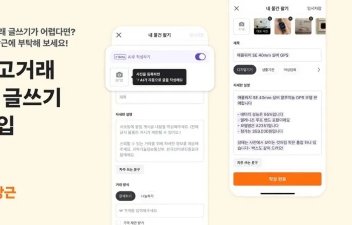 [IT동아박귀임기자]“이물건은얼마에팔아야적당할까요?”중고거래를하다보면자주드는고민이다.이고민해결을도우려,중고거래전문플랫폼당근마켓이판매할물건의사진만등록하면설명부터가격추천까지해주는AI(인공지능)기능을도입해주목받는다.당근마켓앱에서AI글쓰기기능을도입했다/출처=당근당근마켓은5월7일부터자사앱을통해AI글쓰기기능을선보였다.이는이용자가판매하려는물건의사진을올리면AI가분석해상품명과카테고리,물건상태,상세설명등을자동으로제안하는기능이다.AI기능은당근마켓앱곳곳에서확인가능하다.우선홈화면상단중앙에보라색아이콘을선택하면‘중고거래가격렌즈’기능이나온다.사용전,앱에서사진및영상을공유할수있도록카메라접근권한을허용하는것이필수다.중고거래가격렌즈화면에있는가이드라인에물건을놓고원형촬영버튼을누른다.물건을최대한가까이촬영해야한다.그렇지않을경우‘물건에가까이이동하세요’라는문구가나온다.중고거래가격렌즈를통해판매할물건을촬영하면예상가격이책정된다.당근마켓앱에사진을올리면AI가분석한물건가격등을추천한다/출처=IT동아중고거래가격렌즈화면하단왼쪽에촬영한사진이저장된다.이사진을선택하면AI가책정한가격과물건이름이나오고‘AI로판매글쓰기’기능도이용할수있다.화면아래에는‘물건찍으러가기’버튼이있어다른물건을추가로촬영하는것도가능하다.AI로판매글쓰기를누르면AI가사진을분석해자동으로설명을입력한다.설명은이용자가수정하는것도,추가하는것도가능하다.다만‘AI는틀릴수있어요.게시된물품에대한책임은판매자에게있으니AI로작성된내용이맞는지꼭확인해주세요’라고안내한다.당근마켓앱곳곳에서AI기능을활용할수있다/출처=IT동아가격입력란아래에는‘추천가격’이뜬다.이는해당사진속물건과비슷한것을참고해AI가추천한가격이다.실제당근마켓내에서거래완료된물건이미지와가격도함께제공하기때문에참고하면된다.AI기능은당근마켓앱의홈화면하단오른쪽에있는'글쓰기'버튼을눌러도사용가능하다.‘여러물건팔기’혹은‘내물건팔기’중원하는메뉴를누른후‘AI작성시작하기’를선택하면된다.이때AI로작성하기를비활성화하면기존처럼사용할수있다.당근마켓관계자는“이번AI기능은팔고싶은물건이있지만글쓰기가번거롭거나판매글을어떻게써야할지몰라막막한이용자들이특히유용하게사용할수있을것”이라고밝혔다.동일한물건이라도AI로판매글쓰기를취소했다가다시누르기를반복하면설명이바뀐다/출처=IT동아기자가직접당근마켓AI기능을체험해봤다.보라색아이콘을선택해판매물건인브랜드스타벅스의머그컵을촬영하자판매글제목은‘스타벅스머그컵’으로,예상판매가격은8000원으로각각나왔다.AI로판매글쓰기를누르니‘사진꼼꼼히분석중’혹은‘어떤물건인지추리중’등의문구가나타났다.이어‘생활/주방’카테고리에표시된후자세한설명란에는‘스타벅스머그컵입니다.흰색바탕에녹색스타벅스로고가있어요~’라고자동입력됐다.추천가격은3000원~5000원이나왔다.동일한머그컵의뒷면을촬영해올렸더니제목과예상판매가격이달라졌다.‘예쁜머그컵’이라는제목에설명은‘심플하고예쁜머그컵입니다~흰색바탕에포인트글씨가있어요’라고자동으로나왔다.추천가격은700원~1000원이었다.또같은사진이더라도AI로판매글쓰기를취소했다가다시누르기를반복하니‘스타벅스머그컵입니다.흰색바탕에초록색로고가깔끔하게디자인되어있습니다.상태양호합니다’라는설명으로바뀌었다.당근마켓은게시된물건에대한책임은판매자에게있으니AI로작성된내용이맞는지꼭확인하라고당부한다/출처=IT동아이처럼당근마켓의AI기능은빠르고간편해이용자의편의성을높인것이인상적이다.다만AI글쓰기기능은대부분1~2문장정도제공해주는것이전부라물건의모든특징을설명하는데한계가따른다.뿐만아니라물건의각도에따라AI가제안하는가격책정이달라지기때문에이부분을신경써서촬영하는것도필요하다.IT동아박귀임기자([email protected])사용자중심의IT저널-IT동아(it.donga.com)Copyright©IT동아.무단전재및재배포금지.