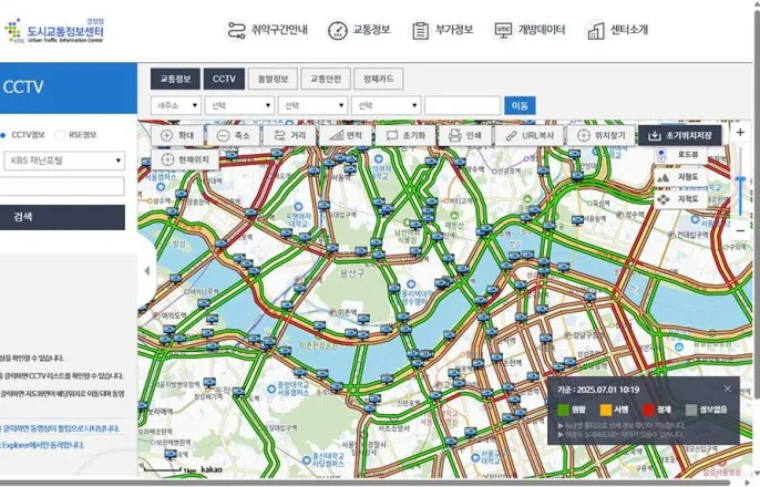 [IT동아남시현기자]우리나라각지역별경찰청및지방자치단체,시설관리공단,한국도로공사등의기관은도로교통점검이나실시간현황파악을위해폐쇄회로(CCTV)를운영및관리합니다.통신기술이발달하기시작한2000년대이후부터는각CCTV를온라인으로송출해누구나직접도로현황을파악할수있죠.이를통해도로상황은물론날씨나행사상황,사고여부등등을세심하게확인할수있습니다.잘알려진서비스지만활용방법을잘모르는독자분들을위해IT하는법으로소개해드립니다.모든CCTV및도로상황파악하는경찰청도시교통정보센터경찰청도시교통정보센터로접속하면실시간도로상황및CCTV화면을직접확인할수있습니다/출처=IT동아경찰청은지난2007년부터도시내도로상황및관련정보를도시교통정보센터에게재하고있습니다.우리가내비게이션으로접하는교통체증이나사고등의실시간정보이도시교통정보센터에서오는거죠.도시교통정보센터는네이버및다음등포털사이트에‘도시교통정보센터’를입력해진입하며,스마트폰은물론웹브라우저로이용할수있습니다.홈페이지에처음접속하면현재접속위치를중심으로도로상황이표시되며,취약구간안내나도로위험상황예보,소통정보,돌발정보등의정보가제공됩니다.소통정보는특정정체구간에서의차량운행속도를제공하고,돌발정보는지도내사고발생위치를상세히표기합니다.각화면내CCTV아이콘을클릭하고아래풀스크린아이콘을누르면고해상도로CCTV화면을볼수있습니다/출처=IT동아지도를확대하면지도상에CCTV아이콘이있으며,이를통해도로용CCTV에직접접속할수있습니다.방범,단속카메라등도로정보이외의CCTV정보는제공되지않습니다.해당지도에서CCTV아이콘을누르면약30초에서1분이전의화면이제공됩니다.이화면에서우측하단의네모버튼(FullScreen)을누르면전체화면으로CCTV화상을볼수있습니다.이화상은단순히화면크기를늘리는게아니라고해상도화상을제공하므로더상세하게정보를볼수있습니다.필터기능을통해CCTV이외의다양한교통관련정보도확인할수있습니다/출처=IT동아이외에도도시교통정보센터의필터링기능을통해사고,공사,행사,기상,통제등의돌발정보만간추려서확인할수있습니다.또교통안전항목을누르면교통시설신호기나보호구역위치,합류도로표시등을상세히확인할수있습니다.지도에서녹색,노란색,빨간색선으로표시되는도로를누르면정체상황은물론차량의평균속도도확인할수있습니다.내비게이션대신도로교통상황을직접확인하는데좋습니다.네이버,다음지도에서도확인할수있어네이버지도에서도CCTV화면이제공됩니다.다만도시교통정보센터에서확인할수있는CCTV가모두제공되진않습니다/출처=IT동아도로용CCTV는도시교통정보센터이외에도네이버,다음지도서비스에서도이용할수있습니다.다만도시교통정보센터처럼전체화면이제공되지않고작은화면만제공됩니다.도로흐름이나날씨,행사정보등만가볍게확인하는용도로적합합니다.네이버지도상에서테마-CCTV를누른뒤지도내아이콘을누르면화면상에CCTV가뜹니다/출처=IT동아우선네이버지도서비스로진입한뒤,우측상단의메뉴바에서‘테마’를클릭합니다.테마메뉴에서는교통정보,CCTV,자전거,등산로등다양한정보가제공되며이중CCTV아이콘을누릅니다.그러면지도화면상에서CCTV아이콘이추가되며,이를누르면CCTV화면에접근할수있습니다.다만도시교통정보센터에서제공되는CCTV가모두제공되는건아니므로상세한정보가필요하다면도시교통정보센터를이용합니다.카카오맵,다음지도상에서도레이어-CCTV를선택하면지도상에서CCTV를볼수있습니다/출처=IT동아카카오맵,다음지도역시마찬가지입니다.카카오맵상단에서‘레이어’아이콘을선택합니다.이때레이어아이콘은사각형두개가겹쳐진표시만돼있고이름이없으니상세히찾아야합니다.지도설정에서는교통정보나CCTV이외에도지형도,지적편집도,법정경계,행정경계등의정보가제공됩니다.이중CCTV를누르면지도상에CCTV아이콘이표시되며네이버지도와동일하게실시간화면을볼수있습니다.네이버지도및카카오맵의CCTV서비스는스마트폰애플리케이션에서도동일하게이용할수있습니다.IT동아남시현기자([email protected])사용자중심의IT저널-IT동아(it.donga.com)Copyright©IT동아.무단전재및재배포금지.