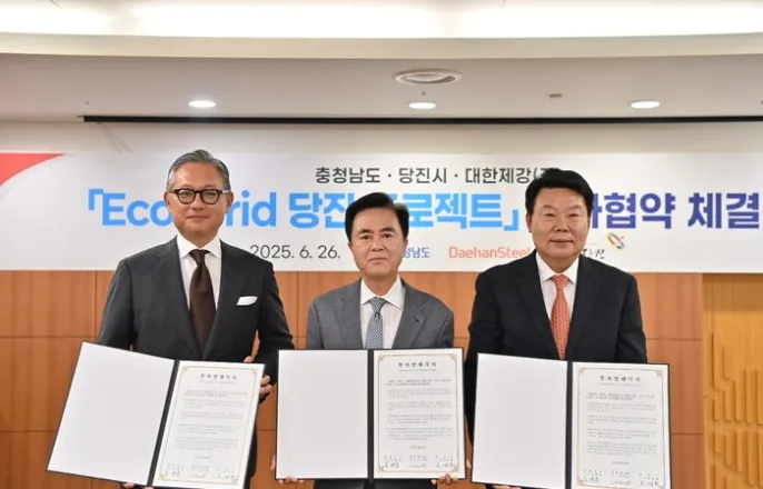 2025년6월26일도청상황실에서김태흠충남도지사(가운데)가오치훈대한제강회장(왼쪽),오성환당진시장(오른쪽)과'에코-그리드당진프로젝트'추진을위한투자양해각서를체결한뒤기념사진을찍었다.충남·대한제강이딩진시석문간척지에조성하는민·관투자협력프로젝트'스마트팜단지'구축사업이탄력을받게됐다.대한제강이주도하는이사업이정부'스마트농업육성지구'로지정되며사업추진에힘이실렸다.충남도는앞서대한제강,당진시와'에코-그리드(Eco-Grid)당진프로젝트'추진업무협약을지난해6월체결했다.협약내용은대한제강이2028년까지5440억원을투자해석문간척지내에119만㎡(119㏊)규모스마트팜단지(석문스마트팜단지)를조성하는게골자다.도는농림축산식품부가스마트농업육성지구지정공모에서사업성과부지선정적정성,계획타당성등을기준으로서류평가와현장조사를통해당진,금산등전국7곳을사업대상에최종선정됐다고4일밝혔다.정부는청년농의안정적인스마트노업진입을돕기위한장기임대팜조성,스마트팜관련산업집적화를통한지역단위스마트농업거점조성을위해스마트농업육성지구심사를거쳐선정하고있다.스마트농업육성지구에선정된석문스마트팜단지는△청년임대온실△청년분양온실△일반분양온실△모델온실△육묘장,가공·유통센터,저온저장고,선별포장센터등공공지원시설등으로구성한다.이단지는특히2028년인근에들어설와이케이(YK)스틸공장폐열을저렴하게공급받아에너지비용을연간100억원이상절감할수있을것으로기대된다.또석문스마트팜단지가가동을통해확보하는연간3만1000톤의탄소배출권은YK스틸에제공,탄소중립실현을뒷받침한다.이번스마트농업육성지구지정으로석문스마트팜단지는인허가의제(일괄처리),공유재산법특례등의혜택을받게된다.건립절차가크게줄어들고,행정지원이확대되며스마트팜단지조성이훨씬빨리지게될것으로도는판단하고있다.더불어현재국내최대스마트팜단지는경남북과전남북4곳에조성된스마트팜혁신밸리로,각면적은20㏊에달해석문스마트팜단지가완성되면국내최대타이틀을쥐게된다.금산스마트농업육성지구는금성면파초리일원11.1㏊규모임대스마트팜이다.금산에는국비100억원을포함해총200억원의사업비를투입,과채류와엽채류등을생산하는스마트농업지역거점을조성한다.금산스마트팜단지는2028년까지200억원을투입해신규조성할계획으로,스마트농업육성지구선정에따라국비100억원을확보하게됐다.도관계자는“이번선정으로생산·유통규모화를견인하는동시에,안정적인농산물생산기반과청년농유입성공모델을구축,대한민국스마트농업수도를완성해나아갈것”이라며각사업조기추진을위해행정력을집중적으로투입하겠다고강조했다.안수민기자[email protected]©전자신문.무단전재및재배포금지.