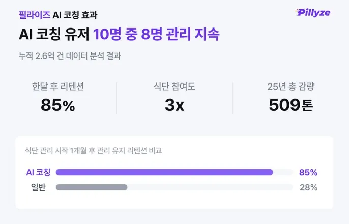 AI코칭적극활용이용자,한달후지속비율85%이상동일유료이용자내에서도활용도에따라이탈패턴차이주말기록유지여부가성과그룹구분변수로확인디지털헬스케어서비스이용자의체중관리지속성과성과가AI기능활용방식에따라차이를보인다는분석결과가나왔다.6일필라이즈는누적2.6억건의라이프로그데이터를기반으로이용자행동을분석한결과,AI코칭기능활용도에따라서비스유지율과체중관리성과에서격차가나타났다고밝혔다.분석에따르면AI코칭을활용한유료멤버십이용자의85%이상이한달후에도체중관리를이어가는것으로나타났다.이는무료이용자와비교해약3배높은수준이다.다만필라이즈는이러한차이가단순히유료여부에서비롯되기보다,AI피드백활용정도에따른것이라고설명했다.실제로유료이용자중에서도AI코칭기능을적극적으로사용하는그룹은이용량이무료이용자대비약4배높은것으로나타났으며,해당그룹에서지속이용률과감량성과가상대적으로높게나타났다.반면AI코칭활용이낮은유료이용자는무료이용자와유사한이용패턴을보인것으로분석됐다.이용자행동데이터에서는‘주말기록의연속성’이성과차이를설명하는변수중하나로나타났다.필라이즈에따르면일반적으로이용자들은주말에식단기록을중단하는경우가많지만,AI코칭을활용하는이용자들은기록이끊기더라도다시이어가는경향을보였다.이러한패턴은이후관리지속여부와관련된지표에서차이를보이는것으로나타났다.또한AI코칭이용자의식단참여도는일반이용자대비약3배높았으며,체중관리효율은약1.4배높은수준으로집계됐다.서비스구조측면에서는전문가가설계한온톨로지기반코칭이적용됐다.이는약사와영양사등이구축한지식체계를바탕으로,이용자의식단기록에따라영양소분석과식사가이드를제공하는방식이다.이외에도연속혈당측정(CGM)을가상으로구현한기술이적용돼,별도기기없이도혈당변화를추정할수있도록했다.해당기술의오차율은약12%수준으로제시됐다.필라이즈는이번분석이데이터축적을넘어이용자행동변화와서비스설계간관계를보여주는사례라고설명했다.다만이번결과는특정서비스이용데이터를기반으로한분석으로,동일한경향이다른서비스나이용환경에서도동일하게나타나는지에대해서는추가적인검증이필요하다.업계에서는AI기반헬스케어서비스의효과를평가할때,기능자체뿐아니라이용자의실제활용방식과행동패턴을함께고려할필요가있다는점을보여주는사례로보고있다.저작권자©Tech42-TechJournalismbyAI테크42무단전재및재배포금지