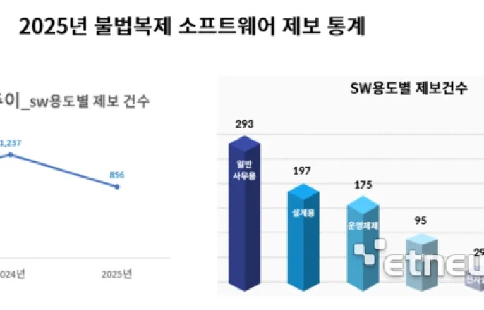 지난해불법복제소프트웨어(SW)제보건수가856건으로전년대비약31%감소한것으로나타났다.제보건수는줄었지만고가의설계용프로그램을중심으로한산업현장의침해양상은조속히해결해야할구조적문제로확인됐다.한국소프트웨어저작권협회(SPC)는공익제보서비스'엔젤(Angel)'을통해지난해접수된불법복제SW현황을분석해4일공개했다.협회에따르면지난해제보건수는총856건으로전년(1237건)과비교해381건감소했다.용도별로는일반사무용SW가293건으로가장높은비중을차지했으며,캐드(CAD)와캠(CAM)등설계분야SW가197건으로그뒤를이었다.이어운영체제와그래픽SW순으로제보가많았다.특히캐드/캠과같은고가설계용SW는전체침해건수에비해실제피해금액규모가훨씬커산업계에실질적인타격을주는주요요인으로분석됐다.불법복제사용유형을살펴보면정품을구매하지않고이른바'크랙(Crack)'버전을설치해사용하는'정품미보유'사례가55%,라이선스규정을위반한사례가34%로나타났다.업종별로는제조·화학분야에서제보가집중됐는데해당산업군에서설계분야SW사용비중이높은특성이반영된결과로풀이된다.협회는사법기관의저작권침해수사를지원한결과도함께공개했다.지난해협회의수사지원을통해확인된침해SW는총137개였으며이에따른침해금액은93억원으로집계됐다.실제수사현장에서도사무·설계용SW가침해사례의과반을차지했다.특히제조·화학분야의비중이높게나타나고가SW를중심으로한불법사용이여전히구조적인문제로남아있음이확인됐다.협회는“불법SW사용은단기적인비용절감효과는있을지모르나,보안취약점으로인한해킹사고나기술지원중단,법적분쟁등경영전반에심각한리스크를초래할수있다”며“불법SW를활용해제작된제품은향후손해배상청구나국가간무역분쟁으로번질가능성도있다”고주의를당부했다.유병한협회회장은“최근불법SW침해가특정업종과고가설계프로그램사용환경에집중되는경향을보인다”며“협회는축적된제보데이터를바탕으로침해양상을정밀하게분석하고사법기관과협력해기술적지원을지속하며공익적역할을다하고있다”고설명했다.최호기자[email protected]©전자신문.무단전재및재배포금지.