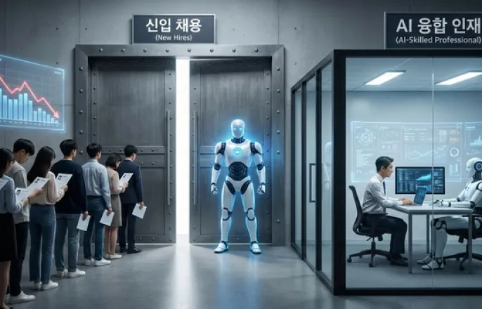 AI전환가속화,업무자동화여파임직원교육통해AI도입효과검증하기도올해대기업신입채용공고수전년比43%감소AI·직무이해도높은청년찾는데…역량쌓을곳은부족제미나이로생성한AI이미지.생성형인공지능(AI)이업계화두가된이후신입취업문이더욱좁아지고있다.팀단위로처리해야했던업무를한사람이AI로신속히처리할수있게되면서기업들은인력충원필요성을느끼지못하고있다.이에경력직선호가더욱강해져신입취업준비생들은더욱처지가곤란해졌다.29일정보기술(IT)업계에따르면AI전환(AX)에적극나섰던기업들은연말을맞아AI도입성과를일제히점검했다.특히사내AI교육이수자들의결과물을철저하게검증했다.디지털타임스취재결과대부분IT기업들은기존직원들에게AI교육을제공하는것이신입직원채용보다효율성측면에서낫다고판단하는분위기다.이러한흐름은신입채용을더욱얼어붙게만들고있다.기업들은몇년전만해도신입채용을축소할때“시장상황에따른결정”이라는이유를댔지만이제는“AX속에서신입채용예신중하게접근하고있다”고말한다.현재의기업용AI는‘업무자동화’에초점을맞추고있다.AI코딩도상당히도입됐다.이는개발자를비롯한신입채용규모를더욱축소시키는요인으로작용한다.기업들의채용심리위축은객관적인통계지표를통해명확히확인된다.올초한국경영자총협회가전국100인이상기업500개사를대상으로실시한‘2025년신규채용실태조사’결과에따르면응답기업의60.8%만이올해신규채용계획이있다고답했다.또한채용을확대하겠다는응답은13%에불과했다.이러한분위기는실제채용현장에서그대로나타났다.지난27일채용플랫폼캐치가지난해와올해1~11월까지대기업정규직신입채용공고를비교분석한결과에따르면올해공고수는2145건으로전년(3741건)대비43%감소했다.같은기간인턴·계약직을포함한대기업전체신입채용공고역시34%줄어들었다.AX가가장활발한IT·통신업종의경우지난해899건에서올해293건으로67%가량급감했다.전문가들은기업들이‘AI와직무모두에이해도가높은인재’를찾고있다고분석한다.단순히AI툴을다루는수준을넘어,직무역량을바탕으로AI를활용해성과를낼수있는사람을원한다는것이다.프로젝트에대한이해도가높을수록AI에입력하는프롬프트를구체화할수있고,결과물의품질을높일수있기때문이다.또한AI가내놓은잘못된결과(할루시네이션)를가려내는역량도필수적이다.최근AI교육을골자로하는부트캠프가활성화되고있지만,이론과실전을겸비해기업이원하는수준의역량을쌓는것은결국취준생개인의몫으로남겨져있다.직무이해도를높이려면실무경험이필요한데,정작그경험을쌓을자리조차사라지고있다는점이문제다.나아가높은역량을갖춘인재들이이미해외로눈을돌리고있다는점도인재양극화를심화시키는요인이다.IT개발교육을담당하는한기업관계자는“인사이트에대해강조를많이하는상황”이라며“AI에앞서레거시와기본적인부분부터공부한이후AI를어떻게써야하는지,해당부분에서AI가왜필요한지를알아야한다”고강조했다.이관계자는“‘아는만큼보인다’는말처럼아무리AI도구가발전해도자신이하고픈것에대한이해도가높지않으면결과물이좋지않기때문”이라고덧붙였다.김영욱기자[email protected]©디지털타임스.무단전재및재배포금지.