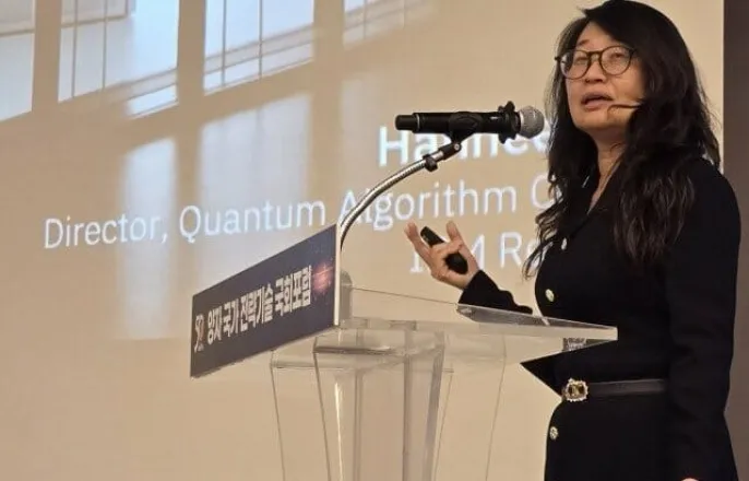 KRISS양자국가전략기술국회포럼서백한희전무"AI와통합한알고리즘추구"(지디넷코리아=박희범기자)IBM이미래컴퓨터비전으로슈퍼컴퓨터와AI(인공지능)-GPU가연계된양자컴퓨터를제시하고나섰다.QPU-CPU-GPU를연계해양자이득을구현하겠다는전략이다.5일국회박물관에서한국표준과학연구원(KRISS)이창립50주년을기념해마련한'양자국가전략기술국회포럼'에서기조강연자로나선IBM양자알고리즘센터백한희총괄전무는이같이말했다.이날행사는최민희·김현·황정아의원(이상더불어민주당)및최형두의원(국민의힘)이공동으로마련했다.5일국회박물관에서열린양자국가전략기술국회포럼에서기조강연하는IBM백한희총괄전무.백전무는이날'양자컴퓨터와슈퍼컴퓨터,GPU의연계를통한전략적국가인프라로서의컴퓨팅시스템구축'을주제로기조강연했다.백전무는"앞으로양자컴퓨팅은AI를포함한다른기능들과통합돼계산도구전반역량을향상시킬것"이라며"이들이사회가직면한가장어려운문제들을해결하게될것"으로내다봤다.이에대한실사례3건으로▲렌슬리어폴리테크닉연구소(RPI)의IBM퀀텀시스템1(127큐비트이글프로세서사용)과▲올해6월운영에들어간일본이화학연구소후가쿠슈퍼컴퓨터(156큐비트헤론프로세서사용)의양자하이브리딩▲지난달가동에들어간일본도쿄대학교미야비(IBM퀀텀플랫폼을통한양자시스템접근)를예시로들었다.IBM마일스톤도제시했다.실용적인양자컴퓨팅보급을위한로드맵인셈이다.이에따르면▲2026년양자우위입증▲2028년최초의오류수정된양자컴퓨터시연▲2029년최초의양자결함이허용된양자컴퓨터제공이다.이외에양자소프트웨어개발키트인키스킷파일전송속도개선과전세계에총9개의양자컴퓨터를배치현황도공개했다.배치된시스템수로보면IBM이100큐비트이하양자컴퓨터기준60개,IQM이20개,리게티가17개,D-웨이브가12개,아이온큐와파스칼이각각6개등이다.백전무는"IBM퀀텀플랫폼서비스사용자수가지난달28일기준으로전세계22만2천211명"이라며"IBM퀀텀네트워크에속한스타트업53개를육성중"이라고덧붙였다.5일국회박물관서열린양자국가전략기술국회포럼에서내외빈이기념촬영했다.(사진=KRISS)이와함께전세계양자소프트웨어기업중54%가IBM퀀텀네트워크에참여하고있고,이들이전체양자소프트웨어벤처투자금가운데84%를차지한다고설명했다.백전무는"IBM은과학과산업발전을위해양자컴퓨팅과고성능컴퓨팅(HPC)을활용해알고리즘및응용개발을가속화해나갈것"이라고언급했다.백전무는또IBM이양자우위를목표로두는알고리즘부터응용까지의주요분야로△해밀토니언시뮬레이션△최적화△양자머신러닝△편미분방정식(PDE)을꼽았다.이에앞서이날주최기관인한국표준과학연구원이호성원장의개회사에이어축사에서는과기정통부구혁채제1차관이나서행사에의미를부여했다.이호성원장은개회사에서"양자는이제국가안보와경제를넘어국가전략으로자리했다"며"이번포럼으로대한민국이양자기술강국으로'퀀텀점프'하는계기가될것"으로기대했다.최민희과방위원장은환영사첫마디에""들을게있으면들으라"라는성경구절이있다.국감에서양자역학을널리알린최민희입니다"라고자신을소개해청중의웃음을자아냈다.이는지난국감에서희화화된양자역학핑게논란을빗대던진한마디였다.두번째기조강연자로나설예정이던미국국무부배유진기술정책디렉터는미연방정부셧다운으로불참했다.5일열린양자국가전략기술국회포럼패널토론모습.심주섭과기정통부과장이발언중이다.패널토론에서는한국표준과학연구원이최근특임연구원으로임명한초연결확장형슈퍼양자컴퓨팅전략연구단장이좌장을맡아진행했다.패널로는백한희전무,김태현서울대양자연구단장,심주섭과기정통부양자혁신기술개발과장,윤천주한국전자통신연구원양자기술연구본부장,한상욱한국과학기술연구원양자기술연구단장이나섰다.이들은▲연세대양자컴퓨터의폭넓은활용▲양자산업진입의어려움▲정부투자확대▲강점과단점을상호보완할국가간협력필요성▲과기정통부의12월양자종합계획발표▲양자의AI와의융합▲양자분야출연연의역할등을가볍게거론했다.박희범기자([email protected])Copyright©지디넷코리아.무단전재및재배포금지.