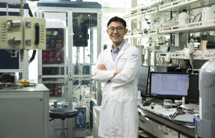 [이달의과학기술인상]최민기KAIST교수루테늄기반암모니아합성촉매전하분리·이동조절이론틀제시저온·저압온건조건서도활용가능기존한계극복···성능7배나높여"흡착기반화학공정개발도나설것"‘이달의과학기술인상’11월수상자로최민기KAIST생명공학과교수가선정됐다.최교수는친환경암모니아합성을위한고성능촉매를개발해청정연료및수소저장기술발전에기여했다.사진제공=과학기술정보통신부[서울경제]“효율적인촉매는‘그린암모니아’를기반으로한청정연료및수소저장기술발전에기여하고식량·에너지·환경문제를동시에해결하는데중요한역할을할것입니다.”과학기술정보통신부가주최하고한국연구재단과서울경제신문이공동주관하는‘이달의과학기술인상’11월수상자로선정된최민기한국과학기술원(KAIST)생명공학과교수가5일자신이개발한‘친환경암모니아합성을위한고성능촉매’를소개하며소감을전했다.최교수는“친환경적이고에너지효율적인촉매와흡착기반화학공정을개발하고싶다”며포부도덧붙였다.과기정통부와연구재단은과학지식이인류복지에기여하는것을목표로하는‘평화와발전을위한세계과학의날(11월10일)’을맞아친환경적암모니아합성을위한고성능촉매를개발해탄소중립과수소경제전환을위한핵심기반을마련한최교수를수상자로선정했다.연구를진행중인최민기KAIST교수.사진제공=과학기술정보통신부암모니아(NH3)는비료와의약품등필수산업원료일뿐아니라액화가쉽고수소저장밀도가높아서재생에너지기반수소를장기간저장하거나장거리운송할수있는차세대에너지매개체로도주목받는다.하지만100여년전개발돼현재도사용되는하버-보슈공정은500도이상,100기압이상의고온·고압조건을유지하기위해막대한에너지를소모하고상당한양의이산화탄소가배출되는한계가있다.최교수는이러한한계를개선하기위해루테늄(Ru)기반암모니아합성촉매의성능을극대화할수있는새로운설계이론을세계최초로제시했다.특히반응과정에서수소원자(H)가전자(e-)와수소이온(H+)으로분리돼촉매의다른부분에각각‘화학적축전기’처럼각각저장될수있다는사실을밝혀내질소분자의반응효율을향상시켰다.해당촉매소재는기존최고수준의촉매대비7배이상높은암모니아합성성능을보인다.저온(300도),저압(10기압)의온건한조건에서도실질적활용이가능하다.최교수는“촉매반응과정에서전하의분리와이동을정교하게조절할수있다는새로운틀을제시한점에서학술적의미가크다”며“암모니아합성반응의근본적이해를한단계확장시켰고향후촉매설계전반에적용될수있는보편적원리를제공해파급력이크다”고설명했다.또한그는“사회경제적측면에서도기존보다훨씬효율적인촉매를통해암모니아생산에필요한에너지를절감함으로써온실가스감축과같은환경적이점은물론‘그린암모니아’를기반으로한청정연료및수소저장기술의발전에도기여할수있다”며“이는결국식량·에너지·환경문제를동시에해결하는데중요한역할을할것”이라고기대했다.‘이달의과학기술인상’11월수상자로최민기KAIST생명공학과교수가선정됐다.최교수는친환경암모니아합성을위한고성능촉매를개발해청정연료및수소저장기술발전에기여했다.사진은제자들과함께연구중인최교수의모습.사진제공=과학기술정보통신부루테늄기반암모니아합성촉매의메커니즘이해.사진제공=과학기술정보통신부최교수의연구는100년간지속된공정을뛰어넘어친환경암모니아합성의게임체인저역할을할것으로기대된다.촉매는나노미터단위에서여러구성물질이복잡하게섞인물질이다.겉으로는같은성분처럼보여도배치와미세구조에따라활성이수십배까지달라질수있다.하지만구조를정밀하게조절하거나원자수준에서분석하는것은매우어려워많은촉매연구가대체로반복실험을통한성능개선에집중해왔다.최교수는“원자단위에서촉매의본질을이해하지못하면진정한혁신이나‘게임체인저’가될수없다”며“학위과정에서기초과학인화학을공부하며현상을깊이있게분석하고이를이론적으로풀어내는훈련을받았고독립연구자가된후에는화학공학을접목해실용적촉매개발의다리를놓고자노력했기때문에기초과학적이해와공학적응용을아우르면서새로운이론적틀을제시하고실제고성능촉매설계로연결할수있었다”고말했다.최교수는“그린암모니아합성은신재생에너지로얻은수소를안전하게저장하고다시연료로활용하는데핵심적인공정으로현재전세계많은기업들이주목한다”며“앞으로촉매설계는얼마나경제적으로합성할수있는지,또대량생산가능한지여부가중요한과제가될것”이라고말했다.또한“암모니아를분해해수소를얻는기술도빠르게부각되고있는데이번에밝혀낸촉매원리를동일하게적용할수있다”며“이번연구에서이해한촉매의근본작동원리를다양한화학반응으로확장하려고노력할예정”이라고말했다.서지혜기자[email protected]©서울경제.무단전재및재배포금지.