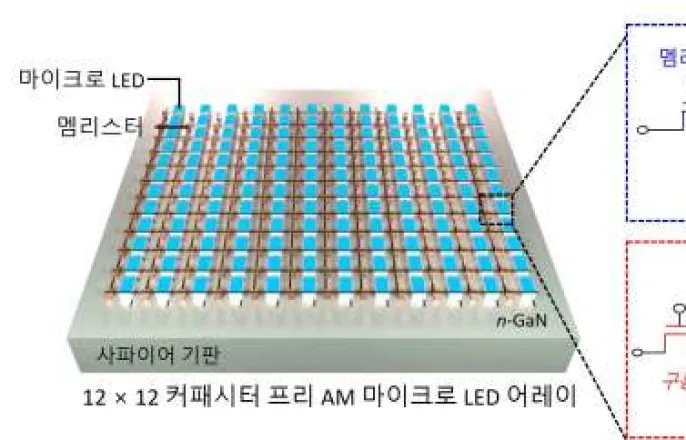 김태근고려대전기전자공학과교수,이호진박사,홍석희박사과정생.한국연구재단제공차세대마이크로LED디스플레이의구조적한계를해결할수있는기술이개발됐다.마이크로LED디스플레이는100㎛(마이크로미터,1㎛=100만분의1m)이하의유기물로이뤄진발광다이오드소자로만든디스플레이를뜻한다.한국연구재단은김태근고려대전기전자공학부교수연구팀이커패시터를사용하지않는초저전력능동매트릭스(AM)구동회로를실험적으로구현하는데성공했다고4일밝혔다.커패시터는전하를저장해전압을일정하게유지시키는전자소자다.AM은각화소가독립적으로제어되는디스플레이구동방식이다.확장현실(XR)기기와초소형웨어러블장치상용화가가속화되면서집적도가더높고전력소모가적은차세대디스플레이에대한요구가커지고있다.마이크로LED를소형화하려면박막트랜지스터,커패시터등의구동소자면적비중을키워야한다.소자면적비중을키우면개구율(단위화소당빛이나오는면적비율)저하,발열,전력증가등이발생한다.특히AM구동회로는트랜지스터안정성을저하시키고커패시터자연방전문제를유발해복잡한보상회로가필요하다는구조적한계가있다.연구팀은트랜지스터와커패시터를하나의멤리스터로대체한‘커패시터프리AM구동회로’를제안했다.기존AM구동회로와멤리스터기반커패시터프리AM구동회로비교모식도.한국연구재단제공멤리스터는전압·전류변화에따라저항이변하고상태가유지되는비휘발성소자다.연구팀은멤리스터특성을활용하면커패시터없이도마이크로LED의밝기를안정적으로제어된다는점을입증했다.연구에사용된저마늄-텔루라이드(GeTe)기반멤리스터는0.2V(볼트)이하초저전력구동과28시간이상의동작안정성을확보했다.김태근교수는“이번연구는수십년간유지돼온트랜지스터–커패시터기반AM구동회로의한계를넘어서는새패러다임을제시했다”며“멤리스터하나로두소자를대체함으로써공정을단순화하고저전력·소형화를동시에달성할수있다”고설명했다.이어“개발된기술은전력소모를최소화하는반도체회로기술인‘상보형금속산화막반도체’(CMOS)공정에도적용가능하다”며“증강현실(AR)글라스,차량용디스플레이,스마트윈도우등차세대초고효율디스플레이의핵심솔루션으로발전할것”이라고덧붙였다.연구결과는국제학술지‘인터내셔널저널오브익스트림매뉴펙처링’에지난달31일온라인게재됐다.<참고자료>doi.org/10.1088/2631-7990/ae1a22[문세영기자[email protected]]Copyright©동아사이언스.무단전재및재배포금지.