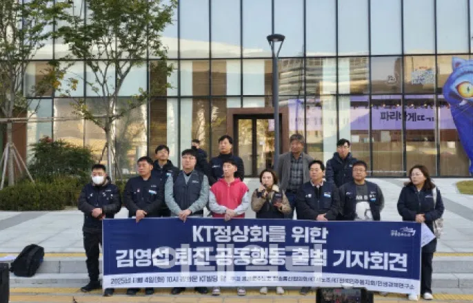 KT새노조·공공운수노조‘KT정상화’기자회견5800명구조조정이후잇단극단선택지적“AI전환명분의인력내몰기,낙하산인사도반복”[이데일리윤정훈기자]KT새노조가4일서울광화문KT본사앞에서기자회견을열고김영섭대표이사의즉각퇴진과공공성회복을촉구했다.이날기자회견에는KT새노조외에민주노총공공운수노조,공공운수노조방송통신협의회,KT전국민주동지회,민생경제연구소가함께했다.KT새노조는조합원이수십명인소수노조로,최대노조인한국노총소속KT노동조합과는별개다.김미영KT새노조위원장이4일오전광화문KT사옥앞에서기자회견을하고있다.(사진=KT새노조)KT새노조는“KT는단순한민간기업이아니라,국민생활과산업경쟁력,공공복지와직결된사회기반기업이다.KT의경영과구조조정문제는곧공공인프라와국민신뢰의문제”라며김영섭KT(030200)사장퇴진공동행동을출범한다고밝혔다.KT새노조는지난해KT가약5800명규모의대규모인력구조조정을단행한이후,불과10개월만에여섯명의노동자가극단적선택을했다고지적했다.김미영KT새노조위원장은“김영섭대표는주주총회에서구조조정이없다고했지만,하루아침에말을뒤집었다”며“AI전환을이유로숙련기술자들을자회사로내몰고현장을불안하게만들었다”고비판했다.이어그는“직원여섯명이목숨을잃었는데도사과한마디없다”며“인간에대한최소한의예의조차없는경영”이라고목소리를높였다.KT새노조는또경영진이마이크로소프트와불공정한계약을체결하고,베트남디지털헬스케어사업도부당하게중단했다고주장했다.앞서국회국정감사에서도김현더불어민주당의원은“KT가해당사업을윤석열전대통령대선캠프후원회장을지낸김철수에이치플러스양지병원이사장측에부당하게매각했다”고지적한바있다.김위원장은“KT이사회가경영진을견제·감시하기는커녕,낙하산인사와비리구조를방조했다”며“지배구조를바로세우지않으면어떤혁신도불가능하다”고주장했다.KT새노조는투명하고민주적인CEO선임절차마련,경영비리감사,구조조정중단,노동자고용안정보장등을요구했다.새노조와시민사회는이번기자회견을시작으로전국적퇴진행동에나설계획이다.KT는이날이사회를열고차기대표이사선임추진안건을의결할예정이다.KT는대표이사임기만료최소3개월전까지사내·외대표이사후보군을구성하도록한정관규정에따라이달중차기CEO공모절차를시작한다.KT새노조관계자는“그동안정권이바뀔때마다KT는낙하산인사들이왔다”며“민주적인절차에따라KT신임CEO가선임돼야한다”고말했다.윤정훈([email protected])Copyright©이데일리.무단전재및재배포금지.