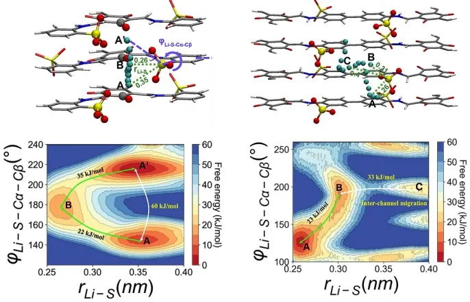 리튬메탈전지화재위험낮춰상용화속도↑변혜령한국과학기술원(KAIST)교수연구진과손창윤서울대교수연구진이리튬이온이실온에서도100배빠르게이동할수있는고체전해질을개발했다.그림은이전해질안에서리튬이온(청록색)이이동하는모습을컴퓨터시뮬레이션으로표현한것이다.(a)는리튬이온이두가지‘통로(채널)’를따라이동하는경로를,(b)는각경로를따라이동할때에너지가얼마나드는지를색으로나타낸지도다./KAIST리튬메탈전지는현재사용되는리튬이온전지보다에너지를훨씬많이저장할수있어‘차세대전지’로꼽힌다.하지만액체전해질을쓰면불이잘붙어화재위험이크기때문에상용화가쉽지않았다.이를대신할고체전해질이대안으로제시됐지만,기존소재는실온에서리튬이온이잘움직이지않아성능이떨어지는것이문제였다.국내연구진이이문제를해결했다.리튬이온이실온에서도100배빠르게이동할수있는고체전해질을개발한것이다.한국과학기술원(KAIST)는화학과변혜령교수연구진과서울대손창윤교수연구진이공동으로상온에서도작동하는‘유기고체전해질필름’을개발했다고4일밝혔다.연구진이활용한소재는‘COF(CovalentOrganicFramework)’라는신형다공성재료다.작은구멍이일정한패턴으로뚫린구조를갖고있어,리튬이온이이동하기좋은통로역할을한다.이번에만든전해질필름의두께는머리카락굵기의약1/5(약20마이크로미터)수준이다.COF는2025년노벨화학상을받은소재인MOF(MetalOrganicFramework)와비슷하게생겼지만,전지환경에서더높은화학적안정성을유지한다는장점이있다.연구진은COF내부에리튬이온을잡아끌어이동시키는기능기(작용기)를일정간격으로배치해,그동안고온에서만빠르게움직이던리튬이온이실온에서도쉽게이동하도록설계했다.이를통해리튬이온이지나는길을분자수준에서정밀제어할수있게됐다.특히리튬이온이쉽게분리되고빠르게이동하도록돕는‘이중설폰산화기능기’를기공내부에추가해,이온이가장짧은직선경로로이동할수있는통로를만들었다.계산시뮬레이션결과,이경로덕분에리튬이온이움직일때필요한에너지가줄어적은에너지로도빠르게이동하는것이확인됐다.또한이전해질은자가조립(Self-assembly)방식으로제작돼구조가균일하고표면이매우매끄럽다.덕분에리튬금속전극과딱맞물려,이온이오갈때더안정적으로이동할수있다.시험결과,새전해질은기존유기고체전해질보다리튬이온이동속도가10~100배이상높았다.이를리튬메탈기반의리튬인산철(LFP)전지에적용했을때300회이상충·방전을반복해도초기용량의95%이상을유지했으며,에너지손실이거의없는수준(쿨롱효율99.999%)을보였다.변교수는“상온에서도빠르게작동하는유기고체전해질을실제로구현한성과”라며“앞으로무기소재와결합하면전극과전해질이맞닿는면(계면)에서생기는문제도해결할수있을것”이라고말했다.이번연구결과는국제학술지‘어드밴스드에너지머티리얼즈(AdvancedEnergyMaterials)’에지난달5일게재됐다.참고자료AdvancedEnergyMaterials(2025),DOI:https://doi.org/10.1002/aenm.202504143-Copyrightⓒ조선비즈&Chosun.com-Copyright©조선비즈.무단전재및재배포금지.