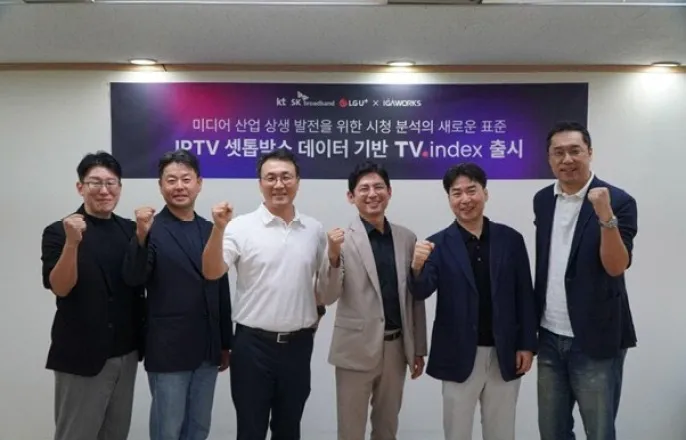 KT·SK브로드밴드·LG유플러스·아이지에이웍스통합시청데이터솔루션‘TV인덱스’공개[이데일리김현아기자]국내TV시청률조사가30년만에새기준을맞는다.KT(030200),SK브로드밴드,LG유플러스(032640)등IPTV3사가아이지에이웍스와손잡고실제1,800만대셋톱박스데이터를기반으로한시청분석솔루션‘TV인덱스(TVIndex)’를공개했다.그동안소수가구패널조사에의존하던시청률측정체계가,실제시청데이터를기반으로한디지털수준의정밀분석으로전환된다.1800만대셋톱박스데이터기반…시청률대신‘실제시청자수’제공TV광고시장에는매년수조원이투입되지만,광고주와방송사는시청자가실제로얼마나시청하는지정확히알기어려웠다.그이유는전국4천가구패널조사를전체시청자로확대하는기존추정방식때문이다.이로인해같은프로그램이라도조사기관마다시청률순위가달라지고,수만명이봐도‘0%’로표시되는왜곡이발생했다.TV인덱스는이러한한계를근본적으로개선한다.단순비율중심의시청률대신,실제시청자수와시청시간을함께제공해프로그램의도달률과몰입도를구체적으로보여준다.예를들어기존에는‘시청률1.5%’라는수치만확인할수있었다면,이제는‘55만명이하루평균1.1시간시청했다’는식으로실제규모를바로알수있다.아이지에이웍스와IPTV3사‘TV인덱스’출시행사.왼쪽부터아이지에이웍스이철환데이터사업부문대표,LG유플러스엄상현미디어제휴담당,SK브로드밴드이창훈콘텐츠전략담당,KT최광철IPTV사업본부장,LG유플러스박찬승홈사업그룹장,아이지에이웍스마국성대표.방송사·광고주·중소채널모두에게열린데이터아이지에이웍스는IPTV3사로부터제공받은대규모시청데이터를통합하고,AI분석을통해업계전반이활용할수있는표준지표체계를구축했다.이를통해방송사는채널과프로그램의성과를객관적으로입증해광고단가협상이나편성전략에활용할수있다.또한중소PP나비인기채널도구체적인시청데이터를근거로광고주를설득할수있게됐다.TV인덱스는개인을식별할수없는통계데이터기반으로설계돼,개인정보침해우려없이안전하게활용이가능하다.현재공개된TV인덱스는채널단위의시청패턴을중심으로제공되며,향후프로그램·광고·성별·연령대등세분화된시청자그룹별데이터로확장될예정이다.아이지에이웍스는이를통해TV시청데이터도온라인처럼정밀하게분석할수있는시대를열겠다는목표다.아이지에이웍스마국성대표는“IPTV3사가공동표준을마련하고,실제데이터기반의사결정이가능한지표를완성했다”며“기관마다달라혼란을초래하던기존시청률대신,업계가신뢰할수있는새로운표준이자리잡을것”이라고말했다.김현아([email protected])Copyright©이데일리.무단전재및재배포금지.