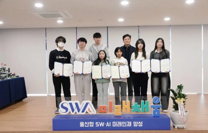 [IT동아박귀임기자]소프트웨어(SW)와인공지능(AI)코딩교육에특화된울산SW미래채움사업이'2025울산SW미래채움성과발표회'를통해올해성과를공개했다.80여명의전문강사진이지역학생1만4000명을교육한것은물론직업계고교취업생대상장기SW교육프로그램도입에대한우수사례선정,디지털격차해소등두드러진성과로주목받았다.이가운데우수한성적으로SW·AI관련전국규모대회에서수상한학생들을시상하며의미를더했다.2025울산SW미래채움성과발표회시상식/출처=IT동아2025울산SW미래채움성과발표회시상식은12월6일오전울산남구종하이노베이션센터3층에서열렸다.챌린지시상식에는정회걸울산정보산업진흥원디지털융합본부인재교육센터장을비롯해수상대상학생과가족,그리고울산SW미래채움강사60여명이참석했다.이날정회걸센터장은인사말을통해"울산정보산업진흥원에서6년째SW미래채움사업을추진해오고있다.올해만해도울산지역학생약1만4000명을교육해높은만족도를얻었다.특히‘2025SW미래채움SW·AI고교챌린지’등전국규모대회에서여러의미있는성과를냈다"고밝혔다.이어"앞으로도울산의미래인재들이SW미래채움을통해지속적으로성장할수있도록교육을이어가고,더발전시킬방안도꾸준히고민하겠다"고덧붙였다.우선초중고교대상으로열린'2025SW미래채움코딩프로젝트챌린지'에서도전인재상을수상한3명이지우(두왕초),전성빈(중산초),윤송현(월봉초)이호명됐다.이들은IDEACODE팀으로챌린지에도전해입상한것.이지우학생은"처음에는코딩이어려웠지만하나씩배웠더니점점쉬워졌다"고말했고,윤송현학생은"코딩할때풀리지않으면속상했는데지도강사의도움을받아잘해결할수있었다.상까지받아더좋았다"고밝혔다.정회걸센터장이2025울산SW미래채움성과발표회시상식에서시상하고있다/출처=IT동아이번챌린지를담당한울산SW미래채움박수빈지도강사는"두달동안챌린지프로젝트를진행하면서순조롭지만은않았다.학생들이실패해도좌절하지않고스스로방법을찾아배우는과정의연속이었다.학생들덕분에수상으로잘마무리했다.모두고맙고자랑스럽다"면서소감을전했다.또2025SW미래채움SW·AI고교챌린지를통해원장상을수상한2팀의시상이이어졌다.울산고AIdea팀(권민석,김효찬,안수현)와울산여고JJJ팀(공민지,김민주,김지연)이었다.AIdea팀은"기회가된다면또다시도전해서더좋은성적을받고싶다"고입을모았다.해당챌린지의경우총530여명의지원자중전국SW미래채움13개가운데11개소의40팀이본선에진출했다.지난8월1일부터3일까지2박3일동안치열하게본선을치렀고,14팀만수상의영광을안았다.당시미션은지역맞춤형AI기반재난대응플랫폼만들기로아이디어기획부터구현및발표까지모든과정을직접수행한만큼더값진결과였다.AIdea는화학단지의화재를신속하게대응할수있는시스템을,JJJ는선박기름유출에대한시스템을각각선보였다.울산지역에특화된재난대응플랫폼이라더욱주목받았다.박현정울산SW미래채움수석지도강사/출처=IT동아박현정울산SW미래채움수석지도강사는이번챌린지의수상에대해"예년보다치열한경쟁속에서정말놀라운성과를거둔것"이라며"울산의미래가밝다고느꼈다"고강조했다.이어"정해진교구와주제로중복되는아이디어도있었지만울산팀은달랐다.울산팀의발표가끝날때마다현장반응이뜨거웠다.그래서수상을예감했다"면서"울산에서총4팀이본선에진출했지만2팀만수상의영예를안았다.모두열심히최선을다해줬기때문에칭찬해주고싶다"고덧붙였다.이외에울산SW미래채움의성과전시와체험공간을마련해눈길을끌었다.전시존에는▲찾아가는교육(레고스파이크프라임·프로보·오조봇·햄스터S)▲직업계고교교육(자율주행알티노라이트)▲특수학교교육(비누·지니봇)등으로,체험존에는▲메타버스(헬로메이플·로블록스·딜라이텍스)▲피지컬코딩(모디·레고스파이크프라임·레고위두)▲AI자율주행(아티보·카미봇·햄스터AI)등으로각각나눠운영됐다.전문강사가친절하게설명해주며이해를도왔다.울산시민누구나관람및참여할수있도록구성해200명이상방문하는등좋은반응을얻기도했다.올해처음으로도입된AI클릭봇을담당한송미영울산SW미래채움강사는"AI기반모듈형로봇코딩교육이다.실제로만질수도있고,코딩도어렵지않게설계돼학생들의반응이굉장히좋았다.울산지역의각종SW관련행사에서도대표적인체험모델로꼽힌다"고알렸다.AI자율주행의카미봇과햄스터AI를담당한백미영울산SW미래채움강사는"울산센터는새로운교구도끊임없이연구하며,코딩을쉽게접근할수있도록프로그램을구성하는문화가잘조성돼있다"면서"코딩교육에소외되는학생이없도록맞춤형으로진행해모두잘배울수있도록돕는다"고설명했다.올해처음으로도입된AI클릭봇은울산지역학생에게가장인기있는교구였다/출처=IT동아울산SW미래채움은기초부터심화까지아우를수있는80여명의SW전문강사를양성,매달40~60시간씩지역학교나기관에서프로그램을운영중이다.이들은지역인력으로구성된다.미취업청년이나경력단절여성등의재도약을돕는데도울산SW미래채움이앞장서는것.지역인력을SW전문강사로양성해학생들의SW·AI교육현장에투입하는선순환구조를이어간다.특히울