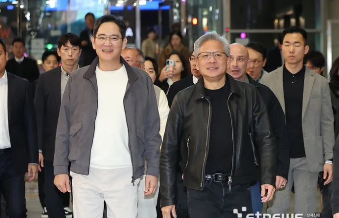 이재용삼성전자회장과젠슨황엔비디아최고경영자(CEO)가30일오후서울강남구코엑스에서열리는엔비디아그래픽카드(GPU)'지포스'의한국출시25주년행사에참석하기위해이동하고있다.김민수기자[email protected]삼성전자와엔비디아가반도체제조혁신동반자로거듭났다.인공지능(AI)기술을활용,반도체생산전주기의생산성극대화를실현할'AI팩토리'구축에함께하기로한것.지금까지메모리공급과수요업체수준이었던양사관계가제조혁신을위한'동맹'수준으로확장돼주목된다.삼성전자는31일엔비디아와전략적협업으로자사반도체공장의'AI팩토리'전환을가속화한다고발표했다.AI가반도체설계부터공정,장비,생산,물류까지전과정을실시간으로분석·예측·제어하는지능형공장을구현하는것이핵심이다.메모리제조와반도체위탁생산(파운드리)뿐아니라삼성전자의AI시스템전반에걸친협력이가동된다.이를위해삼성전자는향후5만개이상의엔비디아그래픽처리장치(GPU)를도입한다.GPU는AI가속기필수구성요소로엔비디아가세계1위다.GPU가탑재된AI가속기로AI서비스뿐아니라물리적AI(피지컬)인프라를구축할수있다.또엔비디아시뮬레이션솔루션'옴니버스'를활용,디지털트윈제조환경도구현한다.디지털트윈은실제제조라인과동일한환경을가상으로구현,시뮬레이션등을통해연구개발(R&D)및생산성을증대시킬수있는기술이다.삼성전자는이미양사협업에착수했다고밝혔다.삼성전자는최근엔비디아AI컴퓨팅기술인'쿠리소(cuLitho)'와'쿠다-X'를도입했다.이를통해미세공정의회로왜곡을AI가실시간예측·보정하도록했다.그결과공정시뮬레이션속도가기존대비20배향상됐다고회사는설명했다.또양사는차세대반도체설계도구개발을위해전자설계자동화(EDA)업체와의공동연구도강화한다.삼성전자와엔비디아협력은이번이처음은아니다.삼성전자가1999년엔비디아GPU에SD램을공급한이후최근HBM공급까지양사관계는지속이어졌다.그러나단순메모리공급을넘어AI팩토리공동구축을통한제조혁신에본격적으로손을맞잡아주목된다.삼성전자는반도체AI팩토리구축을한국뿐아니라미국,중국등세계전역의제조인프라로확산시킬예정이다.또그러한경험을바탕으로국내중소기업의지능형공장구축을지원해나갈계획이다.삼성전자는“AI팩토리를반도체에국한하지않고모바일,로보틱스,가전등모든제조분야로확장해'AI제조생태계'를주도해나갈계획”이라고강조했다.또엔비디아와의협업을자사인공지능(AI)모델,휴머노이드로봇,지능형기지국(AI-RAN)등으로확장한다.AI모델성능을개선해생산성을높이고,차세대먹거리로주목받는휴머노이드로봇의기술개발을가속화한다.피지컬AI기기를효율적으로관제할AI-RAN도국내산·학·연과협력해개발한다.삼성전자는HBM등AI메모리분야에서도엔비디아와의협력을확대할계획이다.특히현재엔비디아로부터성능평가를받고있는HBM4공급과관련,엔비디아와긴밀하게협의중이라고삼성전자는강조했다.엔비디아도이날보도자료를통해“엔비디아최초의그래픽카드NV1과삼성D램의첫협업부터업계최초의상용HBM출시,그리고HBM3E와HBM4의핵심공급협력에이르기까지,양사는25년이상지속된강력한협력관계를자랑스럽게여기며오늘날AI혁신의기반을마련했다”고밝혔다.엔비디아가삼성전자협력관련HBM4공급을언급한건이례적이다.이때문에삼성전자HBM4의엔비디아공급이유력시된다는관측도나온다.엔비디아는“양사는HBM,GDDR,고밀도메모리모듈,소캠,맞춤형솔루션,그리고파운드리서비스분야의반도체협력을지속해더광범위한생태계를지원할것”이라며협업저변의확대를예고했다.박진형기자[email protected]©전자신문.무단전재및재배포금지.