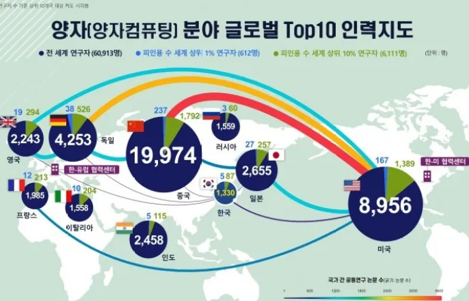 제22회미래인재특별위원회'국가전략기술글로벌인력지도분석안'양자컴퓨팅분야글로벌톱10인력지도/사진=과학기술정보통신부한국이보유한양자컴퓨터연구자수가세계10위수준인가운데상위1%연구자는산업계보다학계에집중된것으로나타났다.과학기술정보통신부(이하과기정통부)는30일제22회미래인재특별위원회(이하미래인재특위)를열고'국가전략기술글로벌인력지도분석안'을의결했다.글로벌인력지도는국가전략기술글로벌연구자데이터베이스를구축하고산업계에서요구하는인력에대한분석결과를제시하는데의의가있다.이번글로벌인력지도는양자컴퓨팅및통신분야를집중적으로분석했다.분석결과양자분야에서는중국과미국이모든중점기술에서가장많은연구자를보유한것으로나타났다.한국은전체연구자기준양자컴퓨팅10위,통신·센싱이12위권에자리했다.중국과미국은전세계핵심연구자(피인용수상위10%)의과반을차지했다.이같은쏠림현상은피인용수상위1%연구자에게서두드러졌다.상위1%연구자는미국의경우구글IBM등산업계에몰려있었다.중국을비롯해독일등유럽국가의경우연구계에도다수분포해있었다.반면한국의상위1%연구자는학계에집중돼있었다.핵심연구자의국가별유출입분석결과,최근10년간중국,미국등이모든양자중점기술분야에서순유입국가로나타났다.한국에도양자컴퓨팅21명,양자통신10명,양자센싱16명이순유입된것으로나타났다.한국유출입의경우한국인(추정)연구자는주로미국,싱가포르,중국으로부터유입됐다.또과거에비해기관내협력은감소했지만국내기관간협력및국제협력은늘어난것으로나타났다.과기정통부는"향후국가전략기술전분야에걸쳐인력지도를구축하고과학기술정책수립및지원을위한주요근거로활용할계획"이라고했다.아울러지식재산처와함께인력지도를구축해논문으로분석하기어려운응용·개발단계연구자현황데이터를보완할계획이다.아울러미래인재특위는이날AI(인공지능)분야국가전략기술인재산업수요분석결과안을의결했다.AI분야기업의채용공고를분석한결과AI인재수요는2022년말생성형AI'챗GPT'등장이후급격히증가했다.이중42.9%의'AI응용개발'직무였다.AI인재수요가가장높은산업분야는정보통신업(63.2%)이었다.과기정통부는이같은분석결과를기반으로△직무별·학력별특성을고려한인력양성전략마련△교육과정다변화△AX융합인재양성확대등을추진할계획이다.미래인재특위를주재한박인규과학기술혁신본부장은"정부는앞으로도국가전략기술전분야로글로벌핵심연구자DB구축을확대해효과적으로R&D(연구·개발)네트워크를구축하고협력기반을마련하겠다"고했다.박건희기자[email protected]©머니투데이&mt.co.kr.무단전재및재배포,AI학습이용금지.