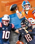 치프스탈락으로머홈스빠져닉스·메이·윌리엄스활약예고미국최고인기스포츠인NFL(미프로풋볼)에서2020년대를지배한팀은캔자스시티치프스였다.스타쿼터백패트릭머홈스(31)가이끈치프스는2020년대에만수퍼볼에5차례올라2020년과2023년,2024년세번정상에오르며‘왕조’를구축했다.하지만올시즌엔6승11패에그치며플레이오프(PO)진출에실패했다.치프스가PO에나가지못한것은2014시즌이후11년만이다.그래픽=백형선머홈스가사라진올시즌NFLPO는2024년드래프트에뽑힌프로2년차쿼터백들의각축장이될전망이다.정규리그에서14승3패를거두며AFC(아메리칸콘퍼런스)1위를꿰찬덴버브롱코스는보닉스(26)가선봉에선다.2024년드래프트전체12순위로브롱코스에지명된닉스는첫시즌부터주전쿼터백으로나섰고,올시즌에도안정적인기량으로팀의선두질주에힘을보탰다.강력한수비를자랑하는브롱코스는AFC에서두번째로적은실점(311점)을허용했다.AFC2위(14승3패)로PO에오른뉴잉글랜드패트리어츠는마침내톰브래디의후계자를찾은분위기다.브래디와함께수퍼볼6회우승을차지하며황금기를구가한패트리어츠는그가2019시즌을끝으로팀을떠난이후엔5시즌동안한차례PO진출에그쳤다.그런패트리어츠의반등을이끈이가2년차쿼터백드레이크메이(24)다.드래프트3순위로NFL에입성한그는루키시절선발출전한경기에서3승9패로프로무대의쓴맛을봤으나올시즌엔리그주전쿼터백중패스성공률(72%)과패스당야드전진(8.9)에서1위에오르는등환골탈태한모습을보여주며팀공격을이끌었다.NFC(내셔널콘퍼런스)에선5년만에PO에오른2위시카고베어스(11승6패)가관심을끈다.2024드래프트전체1순위에빛나는쿼터백케일럽윌리엄스(25)는이번시즌4쿼터에뒤지고있던경기를여섯차례나뒤집는‘강심장’으로베어스팬들을열광에빠뜨렸다.젊은쿼터백들이득세한올시즌노장쿼터백들도힘을냈다.피츠버그스틸러스(10승7패)의43세베테랑애런로저스는5일볼티모어레이븐스와의리그최종전에서294야드를던지는노익장을과시하며26대24승리를견인,극적으로팀에PO행티켓을안겼다.LA램스(12승5패)의38세쿼터백매슈스태퍼드는리그최다인46개의터치다운패스로팀을PO에끌어올렸다.총14팀이나서는NFLPO에선각콘퍼런스1위팀이부전승으로디비저널라운드(8강)로직행하고,나머지12팀은와일드카드라운드로PO첫경기를벌인다.이번시즌와일드카드대진은LA램스-캐롤라이나팬서스,그린베이패커스-시카고베어스(이상한국시각11일),버펄로빌스-잭슨빌재규어스,샌프란시스코포티나이너스-필라델피아이글스,LA차저스-뉴잉글랜드패트리어츠(이상12일),휴스턴텍산스-피츠버그스틸러스(13일)로확정됐다.결승전인수퍼볼은내달9일캘리포니아리바이스스타디움에서펼쳐진다.