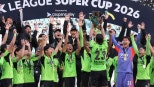 ▲21일전북전주월드컵경기장에서열린'쿠팡플레이K리그슈퍼컵2026'전북현대와대전하나시티즌경기에서우승한전북현대.주장김태환이슈퍼컵을들며환호하고있다. 지난해2관왕인프로축구전북현대가20년만에부활한슈퍼컵에서도우승을차지했습니다. 전북은오늘(21일)전주월드컵경기장에서열린쿠팡플레이K리그슈퍼컵2026에서대전하나시티즌을상대로2대0완승을거뒀습니다. 브라질출신공격수모따와티아고가전후반에한골씩터뜨려승리에앞장섰습니다. 2006년이후20년만에다시열린슈퍼컵은한시즌의시작을알리는단판대회입니다. 전시즌K리그1우승팀과코리아컵우승팀이맞붙는방식으로치러지는데,전북이지난시즌두대회에서모두우승했기때문에올해는K리그1준우승팀인대전이상대로나섰습니다. 지난시즌2관왕을지휘하고떠난거스포옛감독의후임으로전북지휘봉을잡은정정용감독은데뷔전을'승리'와'우승'으로장식했습니다. (사진=연합뉴스)