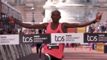 <앵커> 마라톤에서인간한계로여겨지던'2시간의벽'이마침내깨졌습니다.케냐의사바스티안사웨선수가1시간59분30초에런던마라톤을완주했습니다.2,3위선수도모두종전세계기록을앞서며,새로운속도경쟁시대의개막을알렸습니다. 이정찬기자입니다. <기자> 런던템스강을따라이어지는코스에서. 케냐의사웨가역사적인질주를펼쳤습니다. 에티오피아의케젤차,하프마라톤세계기록보유자키플리모등과함께1시간29초에반환점을돈사웨는,시간이지날수록오히려힘을냈습니다. 30km부터40km구간은'27분36초'에주파했는데,100m를16초56에100번연속달린셈입니다. 마지막2km남짓한구간에선더욱스퍼트를올렸습니다. 100m당16초0의페이스로내달린끝에,뜨거운환호를받으며1시간59분30초에결승선을통과했습니다. 종전세계기록을1분5초나경신하며,사상처음으로2시간의벽을깼습니다. [사바스티안사웨/케냐마라토너:정말행복합니다.오늘,런던에서세계기록을세워정말흥분됩니다.역사를새로쓸수있다는걸제가증명했습니다.] 42.195km를두시간안에뛰는건오랜시간인류의한계로여겨졌습니다. 2019년,전설킵초게가페이스메이커를비롯한최적의환경을인위적으로만들어1시간59분40초를기록한적이있지만,실험성격의레이스라공인받지못했고,2023년2시간35초의세계기록을세우며2시간벽을깰후보로주목받던'천재'키프텀은이듬해불의의교통사고로세상을떠났습니다. 하지만사웨가데뷔2년,네번째풀코스도전에마의벽을허물었고,2위를한케젤차도데뷔전에서1시간59분41초로나란히2시간벽을깼습니다. 또2000년생기대주키플리모도2시간28초로종전세계기록을넘어서며,'신인류'의한계없는도전은이제시작이라는평갑니다. (영상편집:이재성,디자인:이예솔)