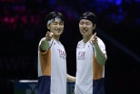 김원호(왼쪽)와서승재.EPA연합뉴스김원호와서승재.로이터연합뉴스한국배드민턴남자복식의‘황금콤비’김원호-서승재(이상삼성생명)조가듀스접전끝에8강에진출했다.배드민턴남자복식세계랭킹1위김원호-서승재는25일수원실내체육관에서열린2025세계배드민턴연맹(BWF)월드투어(슈퍼500)코리아오픈남자복식16강에서일본의야마시타교헤이-미도리카와히로키(25위)조를상대로39분만에세트스코어2-0(22-2021-15)승리를거뒀다.32강과는달리,1세트부터팽팽한접전이펼쳐졌다.1세트시작부터내리4점을내주고끌려다니던김원호-서승재는11-14로뒤처진상황에서5연속득점에성공하며전세를뒤집었다.이후19-19에서역전을허용했으나곧바로승부를원점으로돌렸고,듀스에서연달아2점을추가하며힘겹게1세트를가져왔다.김원호(왼쪽)와서승재.로이터연합뉴스2세트에서도중반까지는팽팽한승부가펼쳐졌다.하지만13-13에서김원호-서승재가4점,2점,2점을연속으로따내며결국8강티켓을거머쥐었다.지난1월처음복식조를꾸린김원호-서승재는올해열린3개의슈퍼1000시리즈(말레이시아오픈,전영오픈,인도네시아오픈)를비롯해여러차례우승을합작했고,조결성불과7개월만에세계랭킹1위에올랐다.지난달세계개인선수권대회에서는금메달을목에걸며한국남자복식조의2회연속세계선수권정상수성에성공했다.이어지난주열린중국마스터스에서도뛰어난기량으로우승을차지하며‘황금콤비’의위력을전세계에알렸다.코리아오픈에서한국이남자복식정상에오른것은2022년강민혁(국군체육부대)-서승재조가마지막이다.3년만에정상탈환에나선‘황금콤비’가쾌조의출발을하고있다.김원호와서승재.로이터연합뉴스윤은용기자[email protected]
