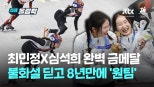 대한민국이쇼트트랙여자계주3000m에서8년만에금메달을따냈습니다.그뒤에는항상최민정X심석희조합이있었습니다.종목특성상체구가큰선수가작은선수를밀어주는게유리한데,지난2018평창동계올림픽이후두선수사이불화설이불거지며한동안이조합을볼수없었는데요.이번2026밀라노코르티나동계올림픽훈련현장에서다시심석희가최민정을밀어주는모습이포착되며기대감은고조됐고,그기대는금메달이라는결과로이어졌습니다.이들의서사,[지금올림픽]에서만나보시죠.[2026밀라노코르티나동계올림픽/쇼트트랙여자계주3000m]심석희가밀어주고최민정이달린다벌어진격차줄인금메달1등공신그러나이조합,8년만이었다[2018평창동계올림픽/쇼트트랙여자계주3000m]2등으로달리던심석희가밀어준최민정가속받아단숨에1등으로금메달따낸한국이사이무슨일이있던걸까?[2018평창동계올림픽/쇼트트랙여자1000m결승]8년전,평창올림픽'아웃코스추월'시도하는최민정을오른손으로밀쳐내는심석희'고의충돌'논란불거지며불화설'일파만파'쇼트트랙계주에서는체격좋은선수가작은선수를밀어주는게유리키큰심석희가최민정을밀어줘야탄력받아하지만불화설이후좀처럼찾아보기어려웠는데…2026밀라노코르티나동계올림픽훈련중심석희가최민정밀어주는장면포착!'금메달'이라는목표아래같은곳을바라보기로그리고8년만에금메달역시최민정X심석희금빛조합[최민정/쇼트트랙여자대표팀]“팀원들이너무잘해줘서서로를좀믿을수있었어서좋은결과나왔던것같아서너무행복해요.”[심석희/쇼트트랙여자대표팀]“서로잘버티면서똘똘뭉치고서로믿으면서해왔다는게느껴져서너무더좋았던것같고요.지금이자리까지함께있어준동료들한테너무고맙다는말하고싶습니다.”취재지원|임민규.