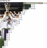 서울·수도권연고팀합산트로피든횟수69회달해부산연고축구·야구팀은수십년째‘감감무소식’국내스포츠최다우승팀은‘V13’여자농구우리은행범현대계우승43회‘강세’‘삼성스포츠왕국’은옛말한국에서프로스포츠가시작된지도40년이넘었다.저변도확대됐다.2025년프로야구KBO리그누적관객이역대최초로1200만명을넘어섰다.프로축구K리그1·2는3년연속유료관중300만명을넘어역대기록을경신중이다.프로스포츠에서연고지는단순한‘지역적기반’이상의의미를갖는다.팬들에게는소속감을,구단에는지속가능한팬덤을제공하는유대형성의핵심이다.하지만프로구단의연고지는특정지역에만쏠리는경향이있고,어느지역은오랫동안‘우승의맛’을보지못하는일도벌어진다.6대프로스포츠종목을통틀어연고지별팀숫자와우승현황은어떨까.연고지별우승횟수경향신문데이터저널리즘팀다이브가올해1월까지프로야구,프로축구,남·여프로농구,남·여프로배구등6개프로스포츠의역대우승기록을살펴보니서울이연고지인구단의우승횟수가21회로가장많았다.인천과대전이각15차례씩으로서울의뒤를이었고,그다음은광주광역시(14회),울산(11회)등으로상대적으로인구가많은특별·광역시들이주를이뤘다.광역권으로확대해서보면경기·인천48회,대전·충청·세종32회,광주·전라27회순이었고제주지역만유일하게우승이없었다.집계는프로리그출범이후정규1부리그우승만을대상으로했고,축구는K리그1·2팀을모두포함했다.우승에목말랐던부산…연고이전은수도권특별·광역시7개로만한정해서보면가장우승횟수가적은곳은부산이었다.통산7번에그쳤다.1997년부산대우로얄즈(축구),부산기아(남자농구)가우승한뒤20여년간우승기록이없었다.2024년이되어서야남자농구팀부산KCC이지스가우승함으로써쉼표를끊었는데KCC는해당시즌을앞두고전주에서부산으로연고지를옮겼다.그다음으로적은지역은대구로통산9회우승했고그중8번이삼성라이온즈(야구)였다.연고지별프로팀분포팀숫자를보면서울이올해1월현재9개(K리그2포함)로단일연고지중가장많다.수원(6개)과인천(5개)등경기·인천지역연고지팀수와합치면모두34개(49.3%)로,수도권을기반으로하는구단이6개종목전체프로팀69개의절반정도였다.수도권에팀이몰려있는것처럼보이지만팀당인구수로보면수도권은76만7000명당하나로타지역보다많은편이아니었다.지역별로는10개팀(14.5%)을보유한대전·충청·세종지역이55만6000명당하나로인구수대비가장많았다.11개팀(15.9%)을보유한부산·울산·경남지역도68만5000명당하나로수도권보다많은편이었다.연고지이전기록으로만보면수도권으로의편중경향이없지는않았다.지난40여년간6개종목에서연고지이전이35번있었는데,빠져나간연고지의60%가비수도권인반면옮겨간연고지는37.1%만비수도권이었다.수도권내부간이동8건을제외하고봐도비수도권에서수도권으로의이동이27건중15건(55.6%)으로수도권에서비수도권으로의이동보다다소많았다.빠져나간팀과새로들어온팀을합쳐서지역별팀순증가를살펴보니서울(2),수원(1),성남(1)등수도권연고지의증가세가눈에띄었다.창원(-3),광주광역시(-2),구미(-2)등주요팀감소연고지는지역에집중됐다.창원은2006년한국전력(남자배구),현대건설(여자배구)이수원으로옮겨갔고,2010년에는상무(남자배구)가성남(상무는2005~2012V리그참가)으로이동했다.범현대vs범삼성승자는?프로팀을운영하는모기업별로살펴보면,범현대계열기업의지원을받는프로팀의우승이43차례로가장많았다.이어범삼성계열27회,LG·GS그룹14회,우리은행13회순이었다.범현대계열에는KCC등을,범삼성계열에는신세계(SSG)등을포함한수치다.2014년까지를보면범삼성계열이25회,범현대계열이23회로삼성이현대를앞섰다.그러나삼성은2015년이후2차례밖에우승팀을배출하지못한반면,현대는꾸준히우승팀을냈다.현대는2024년야구(KIA),축구(울산),남자농구(KCC),여자배구(현대건설)등4개종목에서우승을거두기도했다.한때야구,축구,배구등에서‘왕국’으로불렸던삼성스포츠단의침체는프로팀의관리주체가제일기획으로이관되고긴축기조가시작된2014년과맞물리기도한다.최대우승팀전종목을통틀어우승이가장많은팀은아산우리은행우리WON(여자농구)으로13차례였다.KIA타이거즈(야구)가12회,전북현대모터스(축구)가10회로뒤를이었다.남자배구는대전삼성화재블루팡스(8회),여자배구는인천흥국생명핑크스파이더스(5회),남자농구는울산현대모비스피버스(7회)가가장많이우승했다.우승기록이있는팀이전체의절반을넘었다.조사대상69개프로팀중에40개팀(58%)이우승을거머쥔적이있었다.축구팀은우승경험이있는팀이더적었다.K리그1·229개팀중8개만K리그1우승경험이있기때문이다.야구는키움히어로즈만2008년창단이후한번도우승하지못했다.남자배구는의정부KB손해보험스타즈등3개팀이,여자배구는광주페퍼저축은행AI페퍼스만우승기록이없다.남자농구는수원KT소닉붐과대구한국가스공사페가수스가,여자농구는부천하나은행이아직우승하지못했다.지역별로특정종목이강세를보이기도했다.광주는14번중12번이KIA타이거즈의우승으로‘야구도시’로불리기에손색이없었다.전북은축구팀이유일한프