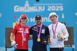 [광주=뉴시스]이영주기자=8일오후광주동구5·18민주광장에서열린광주2025현대세계양궁선수권대회컴파운드남자개인전,메달을획득한선수들이기념촬영을하고있다.왼쪽부터은메달을획득한덴마크국가대표마티아스풀러턴(MathiasFullerton),금메달을획득한프랑스국가대표니콜라스제라드(NicolasGirard),동메달을획득한대한민국국가대표최용희[email protected][광주=뉴시스]이영주기자=45년전5·18민주화운동최후항쟁지였던광주동구옛전남도청일대5·18민주광장이광주2025현대세계양궁선수권대회를계기로지역양궁메카로'잠시'변신했다.전체8일의대회기간중무려6일동안치러지는결승전이모두5·18민주광장에마련된특설경기장에서치러지게되면서지역주민들의관심을받고있다.9일광주세계양궁선수권대회조직위원회등에따르면이번대회컴파운드·리커브종목개인·단체·혼성전각금메달결정전등주요경기가5·18민주광장특설경기장에서펼쳐진다.지난7~8일치러진컴파운드혼성·단체전,남자개인전메달수상자들모두민주광장특설경기장에마련된포디움에서영광의순간을누렸다.조직위는이번대회결승전이치러지는곳으로광주를대표하는공간이자민주·인권·평화의상징인민주광장과옛전남도청일대를낙점했다.옛전남도청은1980년5월신군부폭압에맞서민주·평화·인권을염원하며도청으로모인대학생·시민들이민족민주대성회를연항쟁의산실이다.[광주=뉴시스]이영주기자=8일오전광주동구5·18민주광장에서열린광주2025현대세계양궁선수권대회컴파운드남자개인전16강,대한민국국가대표최용희의차례에관중들이환호하고있다[email protected]계엄군의무자비한폭력에맞선시민군이상황실등을설치한항쟁근거지이며,5월27일계엄군최후진압당시마지막까지분투한5·18대표사적지다.특히민주광장일대가대회의슬로건으로정해진'평화의울림'과도맞닿아있다는점이크게유효했다.슬로건에는'평화의땅'광주에서쏘아올린화살의울림이전세계에퍼지는'평화의메아리'가된다는의미가담겼다.1980년5월항쟁의주요무대였던옛전남도청5·18민주광장은장소자체로서도대회슬로건'평화의울림'을상징하는만큼대회를통해이같은메시지가전달되길바라는뜻이다.시민들은이같은의미를담아마련된경기장이생소하면서도눈길을끈다고입을모은다.서포터즈최순규(64·여)씨는"사람들이지나다니고모일줄만알았던광장에경기장이들어선다니처음에는다소낯설었지만막상객석에올라경기를두눈으로보니생각보다실감나게잘꾸며져있었다"며"대회를빌어앞으로도광장의또다른역할이기대된다"고칭찬했다.관객임미진(45·여)씨도"공간이다소협소하지않을까걱정했는데양궁장이무리없이들어서는것을보고놀라우면서도생경했다"며"국제경기등앞으로도광장의의미를잘전달하는계기가자주만들어지면좋겠다"고했다.이번대회오는12일까지8일간76개국·선수731명이뜨거운경쟁을펼친다.22일부터28일까지열리는세계장애인양궁선수권대회에는47개국·445명이출전한다.[광주=뉴시스]이영주기자=2025광주현대세계양궁선수권대회개막을사흘앞둔2일오후광주동구5·18민주광장에결승경기가열리는특설경기장이설치되고있다[email protected]