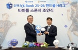 신한금융,2023년부터핸드볼국가대표팀도후원[서울=뉴시스]신한은행,2년간핸드볼H리그타이틀스폰서계약.(사진=한국핸드볼연맹제공)*재판매및DB금지[서울=뉴시스]하근수기자=한국핸드볼연맹은신한은행이향후2년간핸드볼H리그의타이틀스폰서를맡는다고17일밝혔다.이에따라오는11월15일개막예정인새시즌핸드볼H리그의명칭이'신한SOLBank2025~2026시즌핸드볼H리그'로정해졌다.핸드볼연맹과신한은행은지난16일경기이천시의SK하이닉스본사에서타이틀스폰서조인식을진행했다.H리그는지난2년간신한카드가타이틀스폰서를맡았으며,향후2년간신한은행후원을받게되면서신한금융과의동행을이어가게됐다.신한금융은지난2023년부터핸드볼국가대표팀공식후원사를맡고있기도하다.정상혁은행장은"신한은행은고객과지역사회의든든한파트너로서건강한스포츠문화를넓혀가는데힘쓰고있다"며"오랜전통을지닌핸드볼이더많은팬의사랑을받을수있도록함께하겠다"고밝혔다.곽노정총재는"핸드볼H리그타이틀스폰서십이라는큰결정을내려준신한은행에감사드린다"며"H리그는관중수,미디어노출등여러측면에서성장세를타고있는만큼더욱수준높은경기로'K-핸드볼'의재도약을이끌어줄것으로기대한다"고말했다.한편신한은행은여자프로농구단신한에스버드운영,세계기선전바둑대회개최후원,KBO리그타이틀후원,골프·유도·스포츠클라이밍국가대표및스타선수후원등폭넓은스포츠지원을펼치고있다.