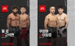 11월2일UFC파이트나이트110출전UFC파이트나이트베가스110포스터./UFC제공[마이데일리=심재희기자]'KO'고석현과'K-머신'이창호가UFC2승에도전한다.UFC웰터급(77.1kg)고석현과밴텀급(61.2kg)이창호는오는11월2일(이하한국시각)미국네바다주라스베이거스UFC에이펙스에서펼쳐지는'UFC파이트나이트베가스110'에출전한다.고석현은'프레시프린스'필로(35∙미국)와맞붙고,이창호는'트와일라이트'티미쿠암바(26∙미국)와대결한다.두선수모두압도적인UFC데뷔전승리이후두번째경기를가진다.고석현(12승2패)은지난6월8연승을달리던오반엘리엇을6차례테이크다운하며심판전원일치판정승을거뒀다.이창호(11승1패)는지난4월코르테비어스로미어스가1.3kg계체를초과했음에도2라운드에그라운드앤파운드로TKO시켰다.2017년국제삼보연맹(FIAS)컴뱃삼보챔피언고석현의상대는11승5패(UFC4승3패)의중견파이터필로다.단한번도판정승이없는결정력이뛰어난선수다.또한단한번도피니시패배가없을정도로내구력과서브미션방어능력도출중하다.키190cm에리치203cm로우월한신체조건을갖고있다.다만석유가스산업에서검층엔지니어로일하다뒤늦게전업파이터의길로뛰어들어나이에비해경력이길지않다.고석현은"저보다위에있고,경험이많은상대다"며대진에대해만족감을표했다.로의스타일에대해서는"키가크고리치가길다보니까다로울것같다"고평가하면서도"카운터공격이좋은편은아니라제가공격적으로밀어붙일수있을것같다"고자신감을보였다.고석현은최근스승'스턴건'김동현,이정원하바스MMA관장과함께태국푸켓으로전지훈련을다녀왔다.현지에서복싱선수들과훈련하며타격을더욱갈고닦았다.그는"첫번째경기보다더완성도높은종합격투기선수로서의모습을보여줄수있다"며"잘준비해재밌는경기보여드리겠다"고다짐했다.상대에게헤드킥을날리는고석현(오른쪽)./UFC제공이창호(왼쪽)니킥공격을시도하고있다./UFC제공ROADTOUFC시즌2밴텀급우승자이창호의상대쿠암바는9승3패(UFC1승2패)의타격가다.8살때부터킥복싱을수련해10살때첫시합에출전한조기교육을받은파이터다.지난4월로베르토로메로를플라잉니킥에이은그라운드앤파운드로TKO하며UFC첫승을신고했다.주로페더급(65.8kg)에서활약하는파이터지만이번에커리어처음으로밴텀급으로체급을내렸다.이창호는쿠암바에대해"스텝이좋고,거리감각이좋은선수다"며"무난하게잘하는선수다"고분석했다.이어"깔끔하게싸우는걸좋아하고,지저분한진흙탕싸움을좋아하지않는것같다"며"저는난전을좋아하기때문에깨부수고들어가겠다"고다짐했다.이창호는무한체력을자랑한다.경기초반에밀리는경우에도끝까지밀어붙여결국역전승을일궈내는저력이있다.밴텀급으로처음내려오는쿠암바가자신의무한압박에대처하기어려울것으로내다봤다."분명히감량문제가있을것이다"며"예전에비해신경계회복이더딜거기때문에나같은스타일을만나면빠르게지칠것이다"고전망했다.또한그는"매시합감동을주는화끈한시합을하겠다"며"이번경기끝나고도부상이없으면최대한빠르게다시싸우겠다"고출사표를던졌다.