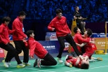 여자단식세계2위왕즈이2대0격파했지만혼복·여복·男단식모두져···2회연속中에막혀안방에서수디르만컵우승을확정하며감격해하는중국배드민턴대표팀.AFP연합뉴스안세영이여자단식에서그나마한국배드민턴의자존심을살렸다.신화연합뉴스[서울경제]여자단식'세계최강'안세영(삼성생명)의활약에도한국배드민턴대표팀이중국의벽을넘지못하고세계혼합단체선수권(수디르만컵)준우승을거뒀다.박주봉감독이지휘하는대표팀은4일중국샤먼에서열린2025수디르만컵결승전에서중국에1대3으로패했다.우리나라는2023년에열린직전대회에서도중국에밀려준우승했다.한국이마지막으로이대회우승트로피를든것은2017년으로당시에는중국을3대2로꺾고정상에올랐다.이때왕좌를우리나라에내줬던중국은이날결승전승리로2019년부터4회연속대회우승을달성했다.수디르만컵은남자단식,여자단식,남자복식,여자복식,혼합복식까지배드민턴5개종목경기가운데세경기를먼저이기는쪽이승리하는방식으로치러진다.첫경기로열린혼합복식에서서승재(삼성생명)-채유정(인천국제공항)조가펑옌저-황둥핑조에1대2(16대2121대1715대21)로패했다.이어진여자단식에서세계랭킹1위이자대표팀의에이스인안세영이출격해왕즈이(랭킹2위)를2대0(21대1721대16)으로제압,승부를원점으로돌렸다.3월세계배드민턴연맹(BWF)월드투어슈퍼1000전영오픈결승전에서2대1(13대2121대1821대18)로웃은데이어또한번왕즈이를꺾었다.이날1게임을21대17로잡은안세영은2게임초반3대6으로끌려갔으나이후내리7점을얻어내며단숨에전황을뒤집었다.전영오픈까지올해들어4연속국제대회우승의위업을달성한안세영은허벅지내전근부상여파로직전아시아선수권에불참하고회복에전념했다가이번대회로복귀했다.체코와1차전에결장한안세영은캐나다,대만,덴마크,인도네시아전에이어중국전까지5경기연속으로여자단식경기를맡아모두2대0완승을거뒀다.하지만남자단식에서전혁진(요넥스)이스위치에게0대2(5대215대21)로완패하면서대표팀의기세도한풀꺾였다.이후여자복식에서백하나-이소희(이상인천국제공항)조가류성수-탄닝조에0대2(14대2117대21)로패하면서중국이안방에서우승트로피를들었다.