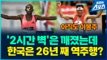 케냐의사바스티안사웨가런던마라톤에서1시간59분30초의기록으로우승했습니다.2023년케냐의켈빈키프텀이세운기존세계기록,2시간00분35초를1분5초앞당기며사상최초로2시간의벽을깼습니다.2위인에티오피아의요미프케젤차도1시간59분41초로'서브2'를달성했고,우간다의제이컵키플리모가2시간00분28초로3위를차지했습니다.이처럼세계마라톤은꿈의기록을깨며전진하고있지만,한국마라톤은여전히2000년이봉주시대에머물고있습니다.한국남자마라톤최고기록은2000년이봉주가도쿄마라톤에서세운2시간7분20초입니다.상위1,2위기록도이봉주가보유하고있습니다.올해대구마라톤한국남자1위기록이2시간20분대일정도로엘리트마라톤은발전하지못하고있습니다.'레전드'황영조감독은"훈련량이절대부족하다"는쓴소리를하기도했습니다.반면,동호인마라톤은놀라운발전속도를자랑합니다.'러닝열풍'이라불릴정도로달리는사람들이폭발적으로증가했습니다.엘리트기록에육박하는동호인러너들도등장했습니다.이러한달리기저변확대가장기적으로엘리트마라톤의발전으로이어질수도있다는분석도나옵니다.명암이공존하는한국마라톤은언제'이봉주시대'를마감하고한단계더도약할수있을까요?■제보하기▷전화:02-781-1234,4444▷이메일:[email protected]▷카카오톡:'KBS제보'검색,채널추가▷유튜브,다음에서도KBS뉴스를구독해주세요!
