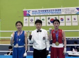 지난14일부터24일까지열린'2026전국종별복싱선수권대회'에서-45㎏급금메달을획득한서연주(오른쪽)선수가기념촬영을하고있다.대전시체육회제공대전광역시체육회복싱팀이'2026전국종별복싱선수권대회'에서여자부종합우승을차지했다.시체육회에따르면최근경북영주생활체육관에서열린이번대회에서복싱팀은금메달1개와은메달2개를따냈다.여자일반부-48㎏급서연주가금메달을목에걸었다.여자일반부-75㎏급권희진과남자일반부-55㎏급한동재는각각은메달을보탰다.특히여자선수들의선전속에대전시체육회는여자부종합1위에오르며성과를냈다.지도자인장우광코치는선수단운영과경기지도력을인정받아최우수지도자상도수상했다.지난14일부터24일까지열린'2026전국종별복싱선수권대회'에서-75㎏급은메달을획득한권희진(오른쪽)선수가기념촬영을하고있다.대전시체육회제공임재환감독은"선수들이힘든훈련을잘견뎌내고좋은결과를만들어줬다"며"대전복싱이전국경쟁력을이어갈수있도록최선을다하겠다"고말했다.이승찬시체육회장은"전국무대에서대전의위상을높인선수단이자랑스럽다"며"선수들이안정적인환경에서훈련할수있도록지원을이어가겠다"고밝혔다.