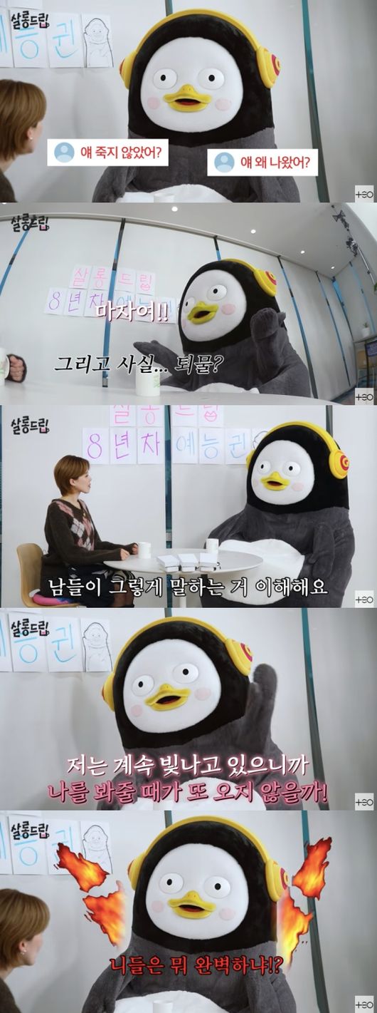 방송시청후작성된리뷰기사입니다.[OSEN=임혜영기자]펭수가'퇴물'이라는악플에대해언급했다.3일채널‘테오’의‘살롱드립’에는‘서바이벌계에혜성같이등장한펭플루언서ㅣ펭수’라는영상이게재됐다.장도연은“서바이벌프로그램나가면악플이달리진않을까걱정되지않았냐”라고물었다.펭수는“‘얘죽지않았어?’,‘얘왜나왔어?’뭐많다.‘퇴물아님?’이런거많다”라고즉답했다.장도연은가장가슴아픈악플을물었고펭수는“가슴안아프다.아무렇지도않다.나퇴물아니니까방송나왔겠지”라고말했다.이어“그리고사실퇴물?맞다.남들이그렇게말하는거이해한다.제가반짝스타였다.2019년부터활동했으니까.그때는정신없이보내고신기했다.‘반짝’이좋은의미로받아들여진다”라고긍정적인마인드를드러냈다.또“저는계속빛나고있으니까나를봐줄때가또오지않을까.욕한번시원하게하고그다음부터는나좋아해줘.사랑해”라고말해마음을따뜻하게만들었다.펭수는장도연에게악플이있는지물었고장도연은자신도악플이있다며“나는보면옛날에는많이긁혀서안봤다.지금은보고바뀔게있으면나도바꾸고.그사람이날좋아하면되면좋고”라고답했다.이어“사실나도상처받아.배움을찾으려고하는데안된다.열받는다”라고말했다.이에펭수는“니들은뭐완벽하냐?거울이나봐내얼굴앞에서말해”라고급발진하는모습을보여웃음을자아냈다./[email protected][사진]채널‘테오’Copyright©OSEN.무단전재및재배포금지.