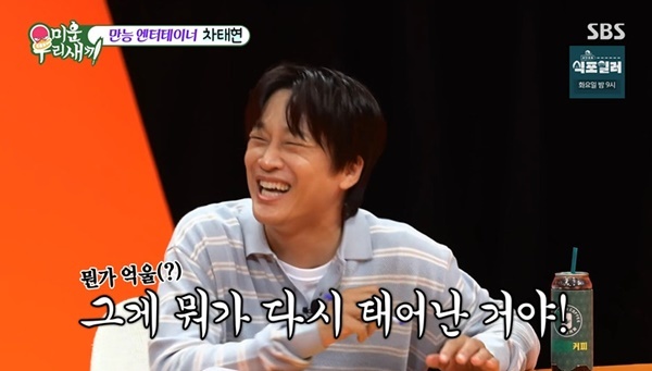 SBS‘미운우리새끼’캡처SBS‘미운우리새끼’캡처[뉴스엔유경상기자]차태현이첫사랑아내와다시태어나도결혼할건지묻는질문에실소했다.4월26일방송된SBS‘미운우리새끼’에서는배우차태현이출연했다.서장훈은차태현에게“전성기때첫사랑과결혼한걸로유명하다.태어나서연애를아내와만한거냐.다른사람과한적이없냐”고질문했고,차태현은“그렇게돼있다.그런삶이죠.그렇지뭐.그런거아니냐”고너스레를떨었다.이어서장훈이“어느정도사랑꾼인지‘미우새’공식질문을드리겠다.다시태어나도?”라며질문을이어가자차태현은바로“안태어나고싶다”고답해웃음을자아냈다.서장훈은“이거오해할수있다.다시태어나도아내와결혼할거냐고물어보려고했다”고끝까지질문하자차태현은“정말최악의질문이다.빠져나갈구멍이없는질문”이라고탄식했다.신동엽이“첫사랑이랑결혼을했는데다시태어나도?”라고다시묻자차태현은“다시태어나서또만나라는거냐.그게뭐가다시태어난거냐.걔삶은뭐냐”고반응해웃음을더했다.뉴스엔유경상yooks@기사제보및보도자료[email protected]ⓒ뉴스엔.무단전재&재배포금지Copyright©뉴스엔.무단전재및재배포금지.