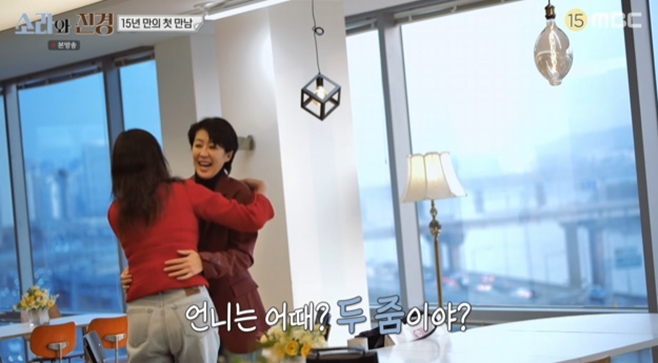 소라와진경[티브이데일리최하나기자]'소라와진경'이소라와홍진경이재회했다.26일밤방송된MBC예능프로그램'소라와진경'에서는이소라홍진경이15년만에재회하는모습이그려졌다.이날홍진경은故최진실을비롯해이영자정선희엄정화이소라와있었던추억에대해이야기했다.그러면서홍진경은이소라를비롯한친목무리들과멀어지게된이유에대해"큰일들을많이겪으면서많이지치기도했다"고했다.이소라는"그때는우리가다같이힘들었다.여기서좀나오고싶다는생각이들때였다"고했다.홍진경은"사이가안좋았던것은아니다.그후에우리에게너무많은아픔들이있었다.그냥그렇게멀어졌던것같다"고이소라와멀어지게된이유에대해이야기했다.이후이소라와홍진경이15년만에만나는모습이그려졌다.15년이라는세월동안교류하지않았던탓에두사람사이에어색한기류가흘렀다.이소라와홍진경은점차다양한주제로이야기를나누며어색한분위기를풀어나갔다.[티브이데일리최하나기자[email protected]/사진=MBC'소라와진경']소라와진경[Copyrightⓒ*세계속에新한류를*연예전문온라인미디어티브이데일리(www.tvdaily.co.kr)/무단전재및재배포금지]Copyright©티브이데일리.무단전재및재배포금지.