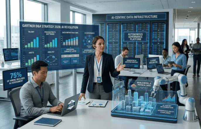 가트너,D&A분야2026년전망발표…AI확산에데이터전략·인재구조변화전망(지디넷코리아=장유미기자)인공지능(AI)확산이기업의데이터·분석(D&A)전략과조직운영,시장경쟁구조전반을재편할것이라는전망이나왔다.인재전략부터생산성소프트웨어,데이터인프라,거버넌스체계까지AI중심변화가가속화될것이란예상이다.16일가트너가발표한'D&A분야2026년주요전망'에따르면인재전략측면에서AI활용역량검증이채용과정의핵심요소로자리잡을것으로관측됐다.또2027년까지전체채용프로세스의75%가직장내AI활용능력을평가하는인증또는테스트를포함할것으로전망됐다.생산성소프트웨어시장도큰변화를맞을것으로예상된다.가트너는2027년까지생성형AI와AI에이전트확산으로지난30년간큰변화가없던생산성도구시장에서약580억달러규모의구조적변화가나타날것으로예상했다.또콘텐츠제작과편집과정도인간중심작업에서AI가분석·재구성하고반복적으로재가공하는방식으로전환될것으로내다봤다.(이미지제작=제미나이)AI데이터생성방식역시변화할전망이다.가트너는2029년까지물리적환경에서활동하는AI에이전트가생성하는데이터가디지털AI애플리케이션이생성하는데이터보다10배많아질것으로예상했다.물리세계와상호작용하는AI애플리케이션이이동경로와공간정보등방대한데이터를생성하면서이를기반으로한'월드모델(worldmodel)'의예측및시뮬레이션활용도확대될것으로분석했다.AI거버넌스도자동화단계로진입할것으로보인다.가트너는2030년까지조직의50%가자율형AI에이전트를활용해거버넌스정책과기술표준을데이터계약형태로해석하고준수여부를자동으로관리할것으로전망했다.다만같은시기AI에이전트도입실패사례의절반은거버넌스플랫폼실행관리부족과시스템간상호운용성문제에서발생할가능성이제기됐다.AI기반기업경쟁력에서도새로운유형의스타트업이등장할것으로예상된다.가트너는2030년까지직원1인당연간반복매출(ARR)200만달러수준의효율성을달성하는초고효율AI스타트업유니콘이등장할것으로내다봤다.이러한기업은투자규모보다자본효율성과성과중심가치평가를기반으로성장할것으로분석된다.AI시대의리더십요소로는인간관계역량이강조됐다.가트너는2030년까지AI경쟁력을확보한조직의60%가인간관계역량을중시하는경영진이이끌것으로전망했다.특히협업과영향력을기반으로조직내역할을확대하는최고데이터책임자(CDAO)의전략적중요성이높아질것으로예상된다.데이터인프라측면에서는'유니버설시맨틱레이어(universalsemanticlayer)'가핵심기반기술로부상할것으로전망됐다.가트너는2030년까지해당기술이데이터플랫폼과사이버보안과함께핵심디지털인프라로간주될것으로내다봤다.이는AI정확도를높이고비용을관리하며다중에이전트시스템간데이터정합성을유지하는데중요한역할을할것으로평가된다.또콘텐츠리스크관리체계도변화할것으로예상된다.가트너는2028년까지콘텐츠리스크관리기능의절반이법무및사이버보안조직에서AI엔지니어링조직으로이동할것으로전망했다.AI가생성하는콘텐츠의위험을사후대응이아닌설계단계에서관리하는방식이확산될것이라는분석이다.리타살람가트너수석VP애널리스트는"데이터와인공지능의변화속도는매우빠르기때문에매년새로운공상과학소설의장을여는것과같다"며"올한해는인간,기계,조직의지능간경계가더욱모호해지고기업들은전례없이데이터에의존하게될것"이라고말했다.이어"AI시스템은단순히인간을지원하는수준을넘어협력파트너로자리잡게될것"이라고덧붙였다.장유미기자([email protected])Copyright©지디넷코리아.무단전재및재배포금지.