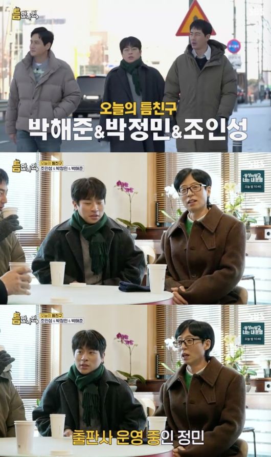 방송시청후작성된리뷰기사입니다.[OSEN=임혜영기자]박정민이유재석에게고마운마음을전했다.3일방송된SBS‘틈만나면,’에는영화‘휴민트’의조인성,박해준,박정민이출연했다.이날조인성,박해준,박정민은추운날씨를뚫고유재석과유연석을만나러왔다.유재석은박정민에게“출판사는잘되고있어?”라고근황을물었고배우외에도출판사사장님으로활약중인박정민은유재석에게“덕분에”라며고마움을전했다.이에조인성은“재석이형이뭘도와줬냐”라고물었고,유재석은“내가뭘도와준건아니고‘유퀴즈’에출판사사장님으로나왔다”라고설명했다./[email protected][사진]SBS‘틈만나면,’Copyright©OSEN.무단전재및재배포금지.