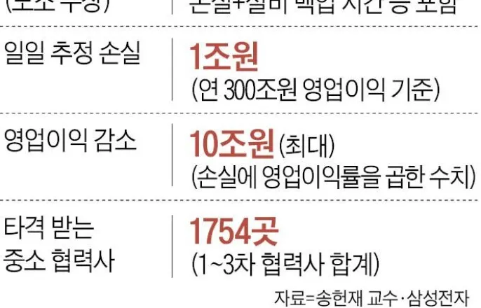 송헌재서울시립대교수발표삼성전자노조가다음달21일부터18일간대대적인총파업에나서겠다고밝힌가운데,이로인한타격이최대30조원이라는직접적경제적손실뿐만아니라글로벌반도체공급망,삼성의브랜드가치·신뢰,국내반도체산업생태계에나쁜영향을미칠것이라는지적이나왔다.송헌재서울시립대경제학부교수는지난23일열린안민정책포럼세미나에서‘삼성전자노조파업의파급효과’라는주제로발표하고,“(삼성전자총파업이현실화되면)눈에보이는가시적비용보다수치너머에숨겨진보이지않는비용을더경계해야한다”고했다.현재삼성전자노조는성과급상한선을없애고,영업이익의15%를성과급으로나눠달라고요구하고있다.지난23일엔경기평택사업장앞에서3만9000명이모여결의대회를열었다.올해300조원영업이익이예상되는삼성전자는노조요구대로라면45조원을성과급으로써야한다.삼성전자노조총파업시예상되는반도체생산차질규모는최대30조원에달한다.하루손실추정액은약1조원이다.총파업후멈췄던라인을재가동하는데2~3주걸리고,이에따른D램과낸드플래시공급차질등을고려하면18일간총파업으로훼손되는영업이익은10조원에육박할것으로추산된다.◇단기손실보다큰보이지않는비용파업에따른더큰타격은보이지않는부분이다.송교수는파업이현실화되면‘신뢰자산의소멸’‘전환비용에따른영구적시장상실’‘투자지연에따른기회비용의상실’‘인적자본이탈과사기저하’‘국가리스크상승’등5가지보이지않는비용이발생할것이라고했다.신뢰자산소멸이란파업이공급안정성을중시하는고객들을불안에빠뜨려삼성전자를떠나게하는것이다.반도체산업은고객이원하는때에원하는성능을보이는칩을원하는만큼적시에공급하는것이중요하다.송교수는“파업으로공급불확실성이커지면고객들은대만의TSMC등대체공급선검토에나설수있다”고했다.다른업체로공급업체를바꾼기업은다시삼성전자로돌아오기쉽지않다.공급망변화에따른운송전략,설계변화등투입되는전환비용이적지않기때문이다.송교수는“파업의영향은국가경제전체의잠재성장동력을훼손하는영구적인손실로고착화될수있다”고했다.삼성전자총파업은AI투자전쟁에서패권을차지할기회를놓치게할수있다.파업으로생산·수익이불안정해지면증설과R&D의사결정이보류되기쉽고이는기업의미래전략에제동을걸기때문이다.송교수는“반도체산업은투자타이밍이곧경쟁력을결정하는핵심요소”라며“엔비디아,TSMC,인텔이사활을건경쟁을벌이는중에내부갈등수습에역량을소모하는것자체가막대한기회비용”이라고했다.파업은삼성전자의1754개소재·부품·장비협력사에도연쇄악영향을미친다.파업으로가동률이떨어질경우투자축소와고용감소로이어질수있기때문이다.이는결국삼성이라는기업브랜드가치하락과한국자본시장전체에대한불신으로이어질수있다.◇“투명한성과급기준만들어야”송교수는삼성전자노사가극단으로치닫는이유를파멸적결과를알면서도비효율적인대치를이어가는‘힉스패러독스’에빠져있기때문이라고진단했다.그는“회사는실제지불능력을숨기려하고,노조는파업의위력을과장하는과정에서비합리적균형점에도달하게되는것”이라며“성과급산정기준의객관화와구간형성과공유제,독립검증위원회상설화등으로해결해야한다”고했다.이익이클때더많이나누되손실이발생하면성과급을환수하거나조정하는리스크공유메커니즘을마련하는것이필요하다는것이다.송교수는“삼성전자파업문제는보상액의크기를결정하는‘분배의문제’가아니라,한국반도체가살아남기위한‘시스템의문제’”라며“노사양측이협력적균형을찾아야한다”고했다.Copyright©조선일보.무단전재및재배포금지.