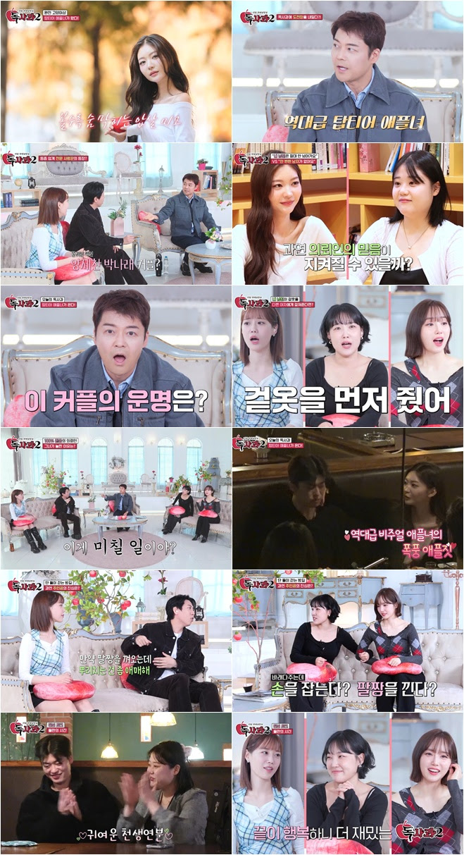 '독사과2'에역대급'탑티어'애플녀가등장했지만,의뢰인커플의단단한신뢰앞에서결국고개를숙이며짜릿한카타르시스를선사했다.11월29일방송된SBSPlus·Kstar공동제작예능'리얼연애실험실독사과시즌2'(이하'독사과2')4회에서는남자친구와1년넘게연애중인의뢰인이"절대넘어가지않을것"이라며도전장을내밀었다.제작진은이에맞춤형설계를더하고'탑티어'애플녀를배치했으며,의뢰인의남자친구는다소아슬아슬한행동으로긴장감을높였지만'최종독사과'에서"여자친구가있다"고말하며상황을마무리했다.방송직후온라인반응은뜨거웠다.SBSPlus공식SNS에공개된'애플녀애교에주인공무장해제?!'릴스는160만뷰를돌파했고1만5천회이상공유됐다.'의뢰인vs애플녀기싸움'릴스도100만뷰를넘기며높은관심을확인했다.시청자들은"현실판'환승연애'같았다","도파민폭발했다","철벽이impressive했다"등다양한반응을보였다.이날방송은가구시청률0.4%(닐슨,수도권,유료방송합산)를기록했고,여자40대에서평균1%시청률을올리며인기를이어갔다.주요포털인기뉴스에도이름을올렸다.5MC전현무,양세찬,이은지,윤태진,허영지앞에서네번째의뢰인이등장했다.요식업종사자커플이라는소개에이은지는"같은업계면믿음이더단단할것"이라며전현무를'동종업계전문사랑꾼'으로지목해웃음을더했다.이후의뢰인의믿음을검증할애플녀가등장했다.현직모델인이번애플녀는역대급미모로시선을모았고,의뢰인과'접선'해사전준비한'유혹체크리스트'를건넸다.의뢰인은스킨십·전화번호요구등대부분항목에'NO'라고표시하며거리를유지하려했다.애플녀는"후회하게하겠다"고말하며의지를드러냈다.제작진의설계도한층강도높게이어졌다.9년차일식셰프인주인공에게가짜TV프로그램녹화를제안해방송국으로불러냈고,이과정에서애플녀는자연스러운호감을유도했다.녹화중주인공은"여자친구가있다"고밝혀스튜디오를안심케했지만,이후볼링장에서분위기가바뀌었다.주인공이애플녀의손목을잡고향수를맡는등친밀한모습을보였고,하이파이브가이어지며긴장감이오르기도했다.술자리에서는애플녀가주인공의겉옷을입고등장해스튜디오를놀라게했다.남자MC들은"매너일수있다"고했지만,여자MC들은"그건선넘었다"고반응했다.이후두사람은음식을나눠먹으며미묘한분위기를보였다.게임에서도주인공은다소위험한멘트를이어갔다.'최종독사과'는"내일둘이만날까요?"라는제안이었다.주인공은"여자친구를봐야한다"며확실히선을그었고,이를본의뢰인은눈물을흘리며안도했다.MC들도"해피엔딩이라다행"이라며박수를보냈다.테스트종료후두사람은따로시간을보내며다정한모습을보였다.SBSPlus·Kstar공동제작예능'리얼연애실험실독사과시즌2'는매주토요일밤9시에방송된다.[사진제공=SBSPlus·Kstar]YTNstar최보란([email protected])*YTNstar에서는연예인및연예계종사자들과관련된제보를받습니다[email protected]로언제든연락주시기바랍니다.감사합니다.[저작권자(c)YTN무단전재,재배포및AI데이터활용금지]Copyright©YTN.무단전재및재배포금지.