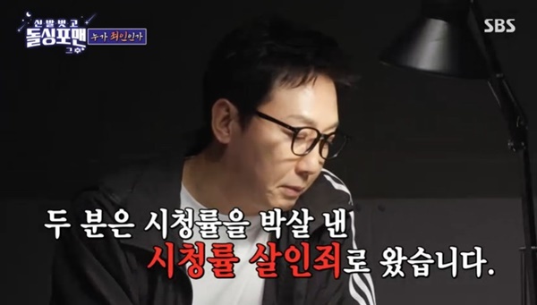 SBS‘돌싱포맨’SBS‘돌싱포맨’[뉴스엔유경상기자]탁재훈이이상민과김준호에게시청률살인죄를물었다.11월25일방송된SBS‘돌싱포맨’에서는탁재훈,이상민,임원희,김준호가취조실에서오프닝을열었다.탁재훈은“오늘왜조사받으러왔는지아시죠?두분이시청률살인마죄로조사를받고있다.두분이원하지않는결혼을해서시청률을다떨어트렸다”며이상민과김준호가결혼을해서시청률이떨어졌다고분노했다.이상민은“말도안되는소리하지마라.결혼때문에시청률떨어지는게말이되냐”고응수했고,탁재훈은“시청률떨어진게미안해서대가리에물들인거아니냐”고몰았다.이상민은탈색은결혼과상관없다고잘라말했다.임원희도이상민에게“가중처벌이다.캐릭터가없다.결혼했지,빚갚았지”라고공격했고,김준호도“(이상민)거지시절이그립기는하다”고받았다.이어김준호는탁재훈에게“‘마이턴’에서는분장하더니왜여기서는안하냐”고,임원희에게는“말계속안할거냐.웃긴말안할거냐”고공격해웃음을자아냈다.탁재훈은이상민과김준호에게“한마디만하면훈방으로보내드리겠다.난당신을사랑하지않아요.좋게끝내자”고너스레를떨었고이상민은바로“난당신을사랑하지않아요”라고미끼를물었다.김준호가“큰일났다”며걱정했고,탁재훈은“이상민다시돌아온걸축하한다”고받았다.(사진=SBS‘돌싱포맨’캡처)뉴스엔유경상yooks@기사제보및보도자료[email protected]ⓒ뉴스엔.무단전재&재배포금지Copyright©뉴스엔.무단전재및재배포금지.