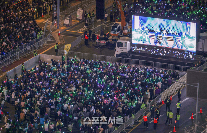 잊혔을까불안해했던순간,광화문이답했다.방탄소년단이4년공백끝에완전체로돌아왔다.21일서울광화문광장에서는‘BTS컴백라이브:아리랑’이개최됐다.이날현장에는약4만여명의팬들이모이며압도적인인파를이뤘다.이번공연은2022년10월부산아시아드주경기장에서열린‘YetToComeinBUSAN’이후약3년5개월만에선보이는완전체무대였다.사진=빅히트뮤직/넷플릭스사진=한국온라인사진기자협회공동취재단사진=한국온라인사진기자협회공동취재단사진=한국온라인사진기자협회공동취재단사진=한국온라인사진기자협회공동취재단무대에오른멤버들은신곡‘BodytoBody’를비롯해다양한신곡과대표곡무대를연이어선보이며건재함을입증했다.특히멤버들은“잊혔을까걱정했다”는솔직한심경을전하며팬들과재회한순간의감정을털어놨다.하지만우려는기우였다.광화문을가득채운4만명의관객과함께,공연은넷플릭스를통해전세계190개국에생중계되며글로벌팬들의뜨거운반응을이끌어냈다.현장과전세계를동시에뒤흔든순간이었다.4년의공백끝에돌아온방탄소년단은다시한번존재감을증명해냈다.[김승혜MK스포츠기자][ⓒMK스포츠,무단전재및재배포금지]Copyright©MK스포츠.무단전재및재배포금지.