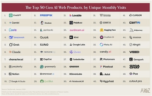 국내인공지능(AI)서비스‘에이닷’과‘파파고’가글로벌생성형AI웹·모바일이용자순위‘톱50’에진입했다.22일미국벤처캐피털(VC)앤드리슨호로위츠(a16z)가최근발표한‘차세대AI소비자앱톱100’보고서에따르면,SK텔레콤의AI비서‘에이닷’이웹제품부문39위에올라국내기업서비스가운데유일하게톱50에포함됐다.또네이버의‘파파고’는모바일앱부문에서43위를기록했으며,카메라앱‘스노우’도모바일48위로톱50에안착했다.이번순위는시장조사기관시밀러웹과센서타워의올해1월트래픽데이터를기반으로,전세계소비자들이실제로가장많이사용하는AI서비스를집계한결과다.순방문자수와활성사용자수등실제이용데이터를반영하는만큼신규서비스유입과시장변화에따라변동성이큰것이특징이다.선두권은글로벌빅테크가장악하고있다.웹제품과모바일앱모두1위를차지한오픈AI‘챗GPT’는월간웹트래픽기준2위‘제미나이’보다2.7배,모바일활성사용자기준으로는2.5배앞서며격차를유지했다.‘챗GPT’의주간활성사용자수는지난1년간약5억명증가해현재9억명수준에달한다.이는전세계인구의10%이상이매주서비스를사용하는규모다.경쟁사들의추격도이어지고있다.올해1월기준‘제미나이’와‘클로드’의유료구독자수는전년대비각각258%,200%이상증가했다.구글은이미지생성모델‘나노바나나’와영상생성모델‘비오3’를앞세워사용자유입을확대했고,앤스로픽은개발자용도구‘클로드코드’를통해유료사용자층공략에나섰다.지역별로는AI생태계가분화되는양상도나타난다.서구권에서는‘챗GPT’와‘제미나이’가주류를이루는반면,중국은‘두바오’와‘키미’,러시아는얀덱스기반‘앨리스’가시장을형성하고있다.인구대비AI도입률에서는싱가포르,아랍에미리트(UAE),홍콩이상위권을차지했으며한국은4위에올랐다.미국은20위에그쳤다.보고서는최근AI시장의핵심변화로AI가별도서비스가아닌기존서비스의‘기능’으로통합되는흐름을지목했다.오픈AI는브라우저‘아틀라스’,퍼플렉시티는‘코멧’을통해검색환경자체를AI중심으로재편하고있으며,구글도‘워크스페이스’등기존업무도구에AI기능을깊숙이결합하고있다.글로벌생성형AI웹제품순위.a16z‘차세대AI소비자앱톱100’양호연기자[email protected]©디지털타임스.무단전재및재배포금지.