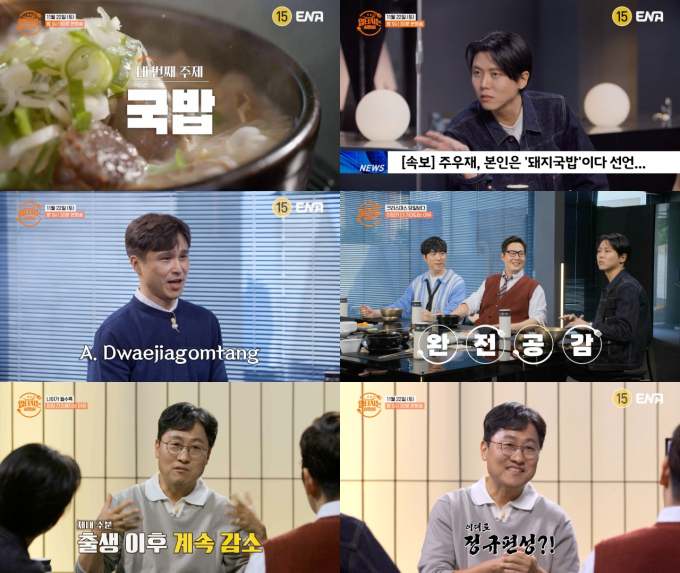 ‘입터지는실험실’오늘최종회(사진=ENA)ENA‘입터지는실험실’이오늘(22일)세계로뻗어나가고있는K-소울푸드‘국밥’을실험대에올리며파일럿마지막회를장식한다.크루로참여한주우재의충격(?)발언부터,수분과도파민논쟁까지,국밥도과학이되는흥미로운실험이이어질것으로기대된다.그가운데,본방송을앞두고선공개된영상들을통해,미리알고보면더흥미로울마지막입터지는핵심포인트를짚어봤다.연예계의유명‘소식좌’주우재는“끼니를알약으로해결하고싶다”는의견을밝혀화제를모은바있다.그런그가국밥토크에과몰입한나머지,“돼지국밥은나자체”라는맛공식을발표,파란을일으킬예정.맛까지챙기는게피곤하다며알약식사를상상했던주우재가자신을국밥이라고말한배경이궁금증이더한다.여기에인지심리학자김태훈까지합류하면서,주우재의한마디로시작된‘국밥분석’토크가더욱뜨겁게달아오를전망이다.물리학자김상욱은“국밥의킥은H₂O(물)”이라는파격적인의견을내놓는다.이를놓칠세라,“미쉐린가서물드시죠”라는궤도의‘깐족’반격을받기도하지만,그만한이유가있다.동물생명체는‘움직이는물주머니’라고할수있을정도로수분이중요하다.김상욱은“우리인간이나이들어죽어가는과정은물이없어지는과정”이라며,태아때80%였던수분비율은6-70대노년에접어들면55%까지떨어진다는설명을이어간다.그리고그이하가되면생명을유지하기어렵다.국밥과관련된수분논쟁이더욱알고싶어지는대목이다.요즘최대관심사인‘도파민’논쟁도이목을끈다.김상욱은크리스마스당일보다이브가더설레는이유,이것이바로쾌락호르몬도파민때문이라며,도파민은막상얻은후가아닌‘얻기직전’에최대치로분비된다는비밀을설명한다.이에김풍과궤도,주우재는쇼핑,숏폼콘텐츠중독등까지도파민의작동원리와연관지으며극도의공감을표하는등,일상속현상들을유쾌하게풀어낼예정이다.이에국밥에서시작해인간의근원적질문까지파고든과학토크가과연정규편성이라는뜨거운결실을맺을수있을지기대를모은다.흥미진진하게과학과미식을융합한대화를나눈김상욱은“레귤러(정규편성)간다.안갈수가없을것같다”라는확신을보여,입크루들의열렬한지지를받는현장이포착된다고해관심이모아진다.제작진은“파일럿4부작을마무리하는이번회차에서는국밥이라는친숙한주제로시작해미래식사,노화,도파민까지가장예측불가능하면서도유쾌한과학토크의정점을찍었다.시청자여러분도끝까지지켜봐주시고응원해달라”고전했다.ENA‘입터지는실험실’4회는오늘(22일)토요일밤9시30분방송된다.박지혜기자[email protected]뉴스연예팀기사제보[email protected]©bnt뉴스.무단전재,재배포및AI데이터활용금지