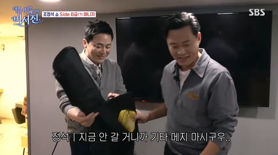 SBS‘내겐너무까칠한매니저-비서진’캡처SBS‘내겐너무까칠한매니저-비서진’캡처[뉴스엔김명미기자]조정석이'비서진'과험난한하루를시작했다.11월21일방송된SBS'내겐너무까칠한매니저-비서진'(이하비서진)에는배우조정석이일곱번째'my스타'로출연했다.이날'비서진'은조정석의콘서트연습현장을밀착동행했다.조정석은시작부터"오늘하루가걱정된다.형님들모시고다녀야할것같다"며걱정을보였다.이는곧예언이됐고,출발부터차가방전되는사건이발생해불안한하루를예고했다.이런가운데김광규는조정석이조심히다뤄달라고요청한기타를마음대로연주하기도했다.환복후등장한조정석은밖에나와있는기타를보고는"왜여기있냐"며"제허락없이함부로만지면안된다"고당부했다.이에김광규는모르는척"그럼요"라고답했지만,제작진은"연주도했다"고일렀다.이에조정석은정색하며"연주를했다고?"라고반응했다.뉴스엔김명미mms2@기사제보및보도자료[email protected]ⓒ뉴스엔.무단전재&재배포금지Copyright©뉴스엔.무단전재및재배포금지.