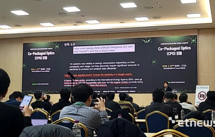 서민석캠텍코리아전무가19일서울강남구과학기술컨벤션센터(STCenter)에서열린'Co-PackagedOptics포럼'에서발언하고있다.인공지능(AI)에사용되는전력소모가지속증가함에따라,이에대한부하를낮추는패키징기술에대한관심이더욱높아지고있다.학계에서는저항과열발생이라는근본적인한계를넘는'공동패키지광학(Co-PackagedOtics,CPO)'에주목해야한다는의견이대두된다.서민석캠텍코리아전무는19일서울강남구과학기술컨벤션센터(STCenter)에서열린'Co-PackagedOptics포럼'에서“우리나라가HBM은잘하고있지만2.5DSiP등일부첨단패키징주도권은대만에넘어가있다”며“CPO와같은신기술을통해시장을선도해야한다”고강조했다.최근각광받는다양한생성형AI기술은작업효율을높여주지만그만큼전력과컴퓨팅파워를많이필요로한다.비슷한답을얻는작업이라도포털사이트키워드검색서비스대비생성형AI서비스는10배이상을전력을소모한다.AI서비스에필요한대형데이터센터는수만가구가사용하는전력을소비하며,이중43%가냉각에사용될만큼열방출문제가심각하다.패키징기술은데이터전송경로를줄이고저항을낮춰전력효율을높이는것이목적이다.다만금속배선은근본적으로열·저항이발생하는한계가있다.CPO는금속배선을'빛(光)'으로대체해저항이없고전력소모를획기적으로줄일수있는구조를도입하자는개념이다.기술자체는수십년전에발표가됐지만정밀한공정기술이필요해도입난도가매우높다.고대역폭메모리(HBM)의연결통로가40에서20마이크로미터(μm)수준이라면,빛이지나가는광섬유의핵심통로(코어)는10μm에불과하다.또한빛손실을막기위해서수백나노미터(nm)단위로정확히정렬해야해오차허용도가매우낮다.광신호를가리면안되므로부품을고정하는본딩과정도일반적인플럭스방식을쓸수없다.고온(320도)녹는점을가진금박막(AuSn)솔더를써야하는데,이고온때문에본딩과정에서나노단위정렬이틀어지는문제를해결해야한다.이문제를해결하는방법으로실리콘밸리는'마이크로LED'기술에주목하고있다.마이크로LED는매우작은크기의발광다이오드로,가로20μm세로30μm두게5μm에불과할정도로작다.내열성이높고수백개채널을동시에구성할수있어방대한데이터를한꺼번에보낼수있다.한국전자통신연구원이마이크로LED를반도체기판위로옮겨심는전사(Transfer)부터언더필까지가능한것으로알려져있다.최광성한국전자통신연구원본부장은“한국기업들은사실레이저다이오드등요소기술들은다갖고있는데,실리콘밸리처럼제품화·상품화를못하고있어안타깝다”며“메모리나HBM만집중하고있으면안된다”고지적했다.이형두기자[email protected]©전자신문.무단전재및재배포금지.