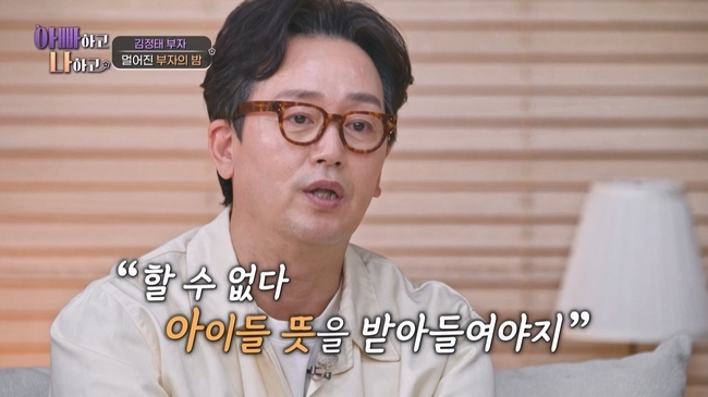 채널A‘아빠하고나하고’캡처채널A‘아빠하고나하고’캡처[뉴스엔이민지기자]배우김정태가사춘기둘째아들과갈등을빚었다.3월18일방송된TVCHOSUN'아빠하고나하고시즌3'에는임성한작가의새드라마TVCHOSUN‘닥터신’에서유명스타일리스트역을맡아연기변신에도전하는전노민이새로운‘아빠대표’로찾아왔다.원조‘딸바보’로꼽히는전노민은“어릴때머리를직접묶어줬다.아빠만하다보니다른사람이하면못하게했다”라며딸도아빠껌딱지인면모를자랑했다.9살에미국으로유학을떠난전노민의딸은현재미국대학병원연구원으로성장해부러움을자아냈다.‘딸바보’전노민에게전현무는“사춘기아들과입뽀뽀를한다”라며‘아들바보’김정태의일상을폭로했다.당황하는전노민에게‘두아들아빠’김정태는“아들이랑키스하는모습한번보실까요?”라고너스레를떨며중학생인두아들과여전히스킨십이가득한일상을예고했다.‘야꿍이’로유명했던김정태의첫째아들김지후는물리,코딩,애니메이션제작등에천재성을보였다.영어또한원어민수준이어서‘천재소년’으로주목받았다.그러나‘아스퍼거증후군’으로의심되는만큼사회성은다소부족했고,가족과함께있는시간보다는홀로있는시간을선호했다.혼자만의시간을즐기고,또래와는조금다른관심사를보였던지후는게임제작영상을주제로유튜브채널을직접운영하며자신만의세계를넓혀가고있었다.또같은관심사를가진해외친구들과함께소통하며꿈을키워나가고있었다.이런지후의모습은김정태를뿌듯하게했다.한편,오랜만에아이들과함께시간을보내고싶었던김정태는두아들에게등산을제안했다.이에중1인둘째아들김시현은“아빠는가끔눈치없을때가있다.중학생이아빠랑놀아주는건진짜손에꼽을거다”라며놀아달라는아빠를귀찮아하는기색을보였다.그러나삐치면오래가는아빠때문에두아들은아빠와의등산을결심했다.집근처등산로로향하던김정태부자는셋이나란히손을꼭잡은모습으로스튜디오를놀라게했다.게다가스트레칭을돕던김정태는아들의입에뽀뽀를퍼부으며애정표현을펼쳤다.이에전현무는“진짜충격적이다.이게말이돼?”라며눈앞의스킨십을믿지못했다.전노민도“이거방송사고는아니죠?”라며진귀한풍경에혀를내둘렀다.그러나놀랄일은여기서끝이아니었다.등산후김정태는아들들과동반샤워를하려고했다.여기에는두아들도반발했다.이미동반샤워에서독립한지후는쉽게혼자샤워하기를허락받았지만,시현이는아니었다.김정태의아내와지후가합심해“시현이도혼자샤워하게하자”고제안했지만,김정태는“다른건다양보해도그건절대안된다”며경고했다.김정태는“태어났을때부터씻겨줬다.머리도말려주고로션을발라주며어디가좀달라졌나보고...그러면서시간같이보내는거다”라며여전히아들과가까이지내고싶은마음을밝혔다.게다가김정태는어릴적아버지와목욕탕에다녔던좋은추억이있었고,그영향으로아들과의목욕에집착했다.그러나시현이는“난싫다고했다.혼자씻겠다”며잔뜩예민해졌다.이어“아빠랑그만씻고싶다.이제컸기도했고아빠스타일이랑제가씻는스타일이랑달라서혼자씻고싶다”고속마음을전했다.또시현이는“(지후)형은형이라서봐주는게있는데저만아빠랑같이씻고,저한테만스킨십하고그런다.차별받는다”며아빠에대한짜증을터트렸다.이와중에지후가혼자먼저샤워하러들어가며김정태와시현이의대립은잠시중단됐다.지후가다씻고나오자김정태는“씻으러가자”며시현이를불렀고,시현이는“나혼자씻을거다”라며거절했다.그러나포기하지않는아빠에시현이는“왜나만참냐”며애꿎은휴대전화를내팽개칠정도로불만을표출했다.그모습에김정태는“뭐하는거냐”며분노했지만,시현이는꿈쩍안하며아빠와신경전을벌였다.결국김정태는“너알아서해라”라며‘동반샤워’를포기하고홀로샤워하러들어갔다.김정태부자의갈등이담긴VCR에전현무는“이집은의외의포인트에갈등이있다.싸울일에안싸우고왜여기서싸우냐”고이해가안된다며고개를저었다.그러나김정태에게이사건은“사랑하는여자한테버림받듯이그렇게팽당하니까너무기분이안좋았다.씻겨준게마치죄가된것같았다”라고할정도로큰일이었다.전노민은“놓아주어야한다.자연스러운일이다”라며위로했다.둘째아들의‘샤워독립’선언에김정태는결국삐쳤고,달라진분위기에김정태의아내와지후는물론스튜디오까지김정태의눈치를살폈다.아내가“시현이가사춘기라서그렇다”라며중재하려하자,김정태는“혼자돈벌어서기어나가라그래!”라며뒤끝을보였다.그러나시현이의머리를말려달라는아내의요청에김정태는자연스레시현이에게다가가머리스타일링을해줬다.전노민은“삐쳤으면30분이라도있다가오지,또해주는것도웃기다”며‘아들바보’김정태를인정했다.또김정태의아내는시현이에게“아빠랑딱얘기해서합의를봐.엄마가아빠랑네얘기를듣고설득력이강한쪽으로손을들어주겠다”며‘샤워독립협상’을제시했다.그렇게저녁식사중김정태가“시현이가이제중학교올라가니까...”라고운을떼자,‘중재의신’김정태의아내는“혼자목욕하고?”라며틈새를노렸다.김정